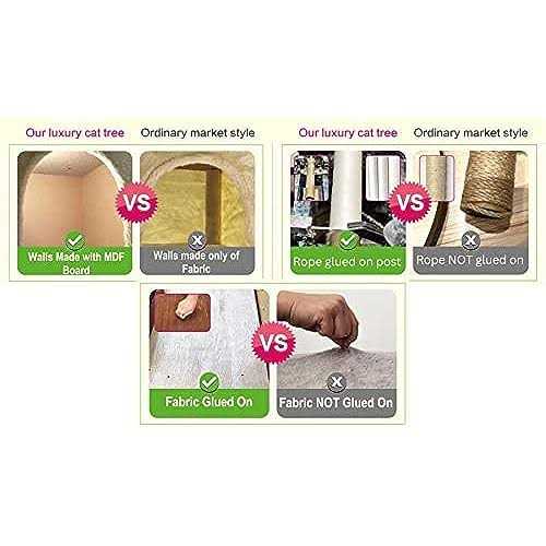 This tree is furnished in a luxurious faux-fur finish for unparalleled comfort and warmth. A bottom-level condo offers a spacious layout for spreading-out while the top house is better for curling-up and cuddling. The oasis includes a multitude of elevated surfaces and platforms so your pal can perch proudly. Your feline friend can enjoy her meals in the tree with the built-in feeder bowl. Sisal rope-wrapped scratching posts encourage positive scratching behavior while dangly toys engage her playful side.