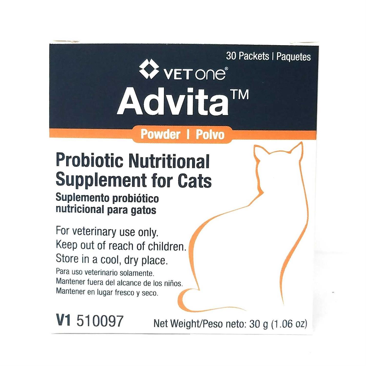 Advita is a blend of mulitple probiotic bacteria and the prebiotic inulin for use in cats and dogs. Inulin helps facilitate the growth of the good bacteria in the GI tract. It can also help feed the strains of prebiotic bacteria that are included in Advita: Enterococcus faecium, Lactobacillus acidophilus, Lactobacillus casei and Bacillus coagulans. It also has vitamins A, C and E to help keep your pet healthy. The product for cats also contains Taurine. By giving your pet this product, it may help regulate your pets stools and appetite. Consult your veterinarian prior to starting this product, so they can decide if your pet would benefit from using it.
