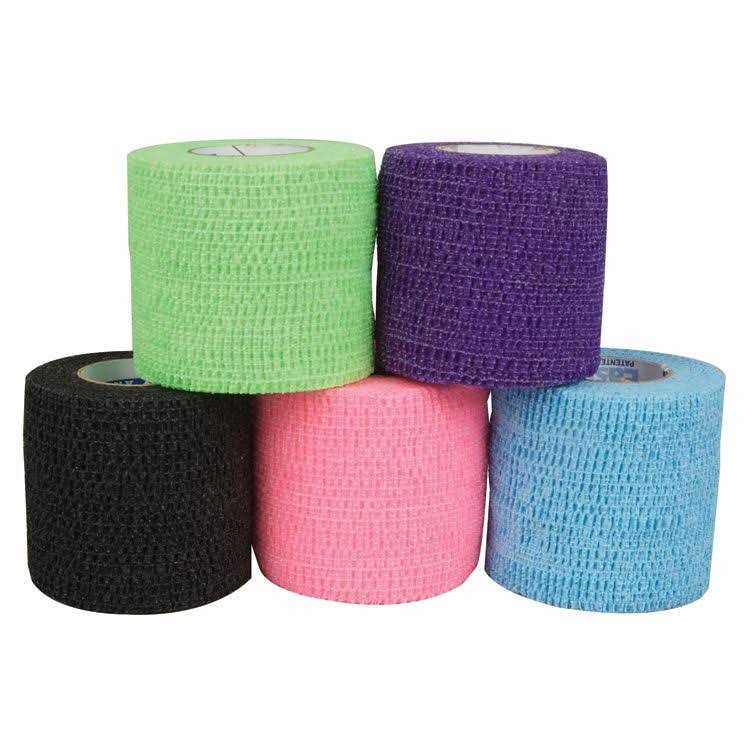 Cohesive flexible bandage. Will not constrict. Does not stick to skin or hair and stays in place. Stronger than the competition’s bandages, yet still soft and comfortable enough to use on most pets. Hand tear, no scissores needed. Won’t shrink. Coheres to itself. Will not stick to fur, skin or hair. 2 inch x 5 yards per roll.
