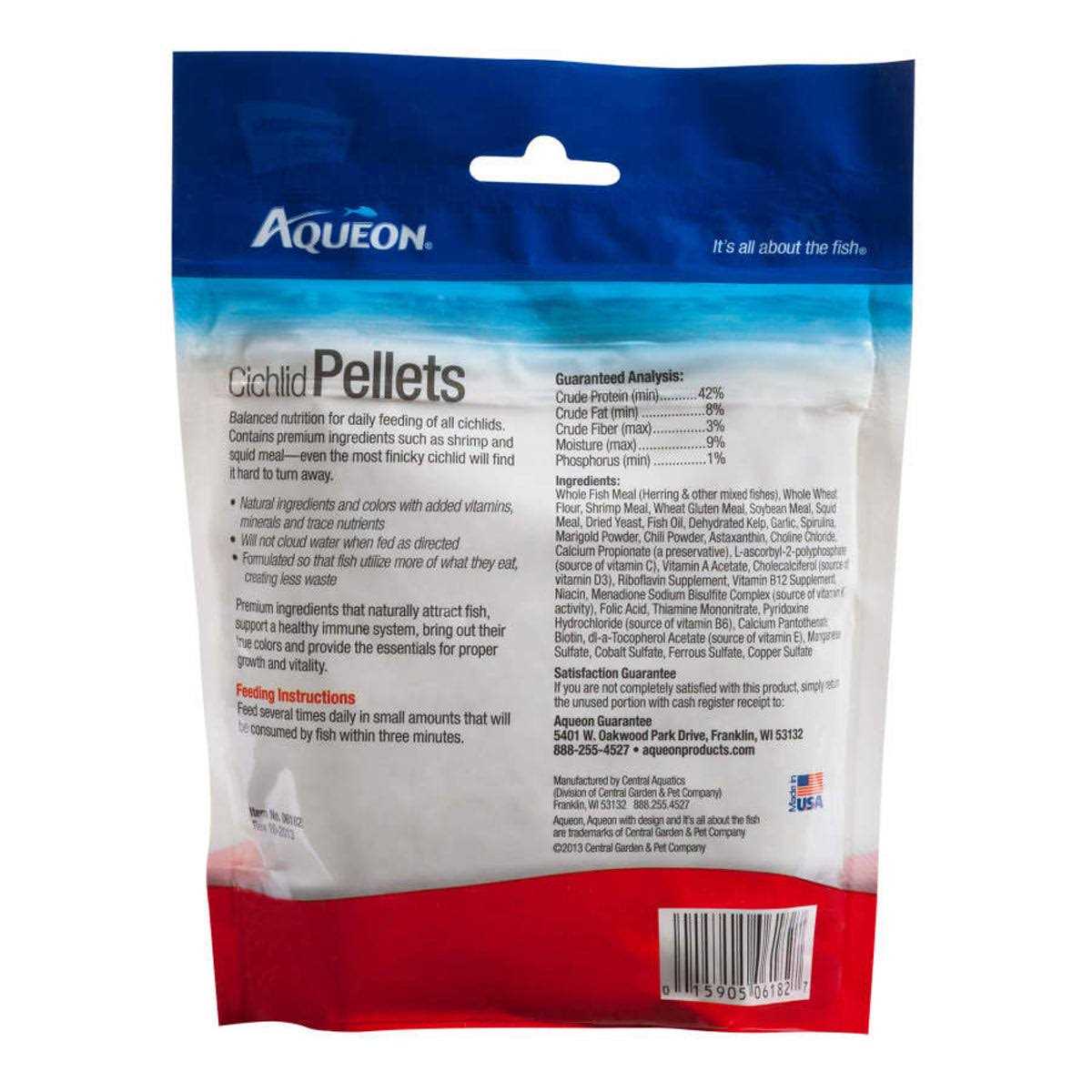 Aqueon Cichlid Pellets are made with premium ingredients, like shrimp meal, to attract the most finicky cichlids. Available in a variety of pellet sizes for small to large cichlids as well as oscars and discus. The color enhancing formula is a blend of marigold, chili powder and astaxanthin to help promote brilliant colors in fish.