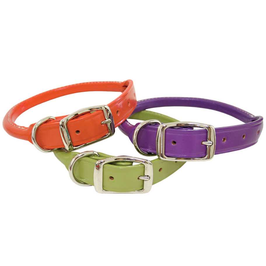 Round up your furry pet with the Auburn Leathercrafters Round Leather Dog Collar in Purple! Aids in preventing matting and tangled fur Handcrafted, Rolled Full grain stiff bridle leather Beveled and polished edges Buckle collar Made in the USA! Over 20 production steps in this handcrafted design. Nickel plated buckle and D-ring adorn they top grain leather. Beveled and hand polished edges with black bridle leather backing. Made in the USA! Matching Town Dog leash sold separately. Family owned and operated since 1950 in New York State. Excellence is a tradition that has been passed down for generations. Handcrafted and made from the finest top grain leathers and other quality materials.