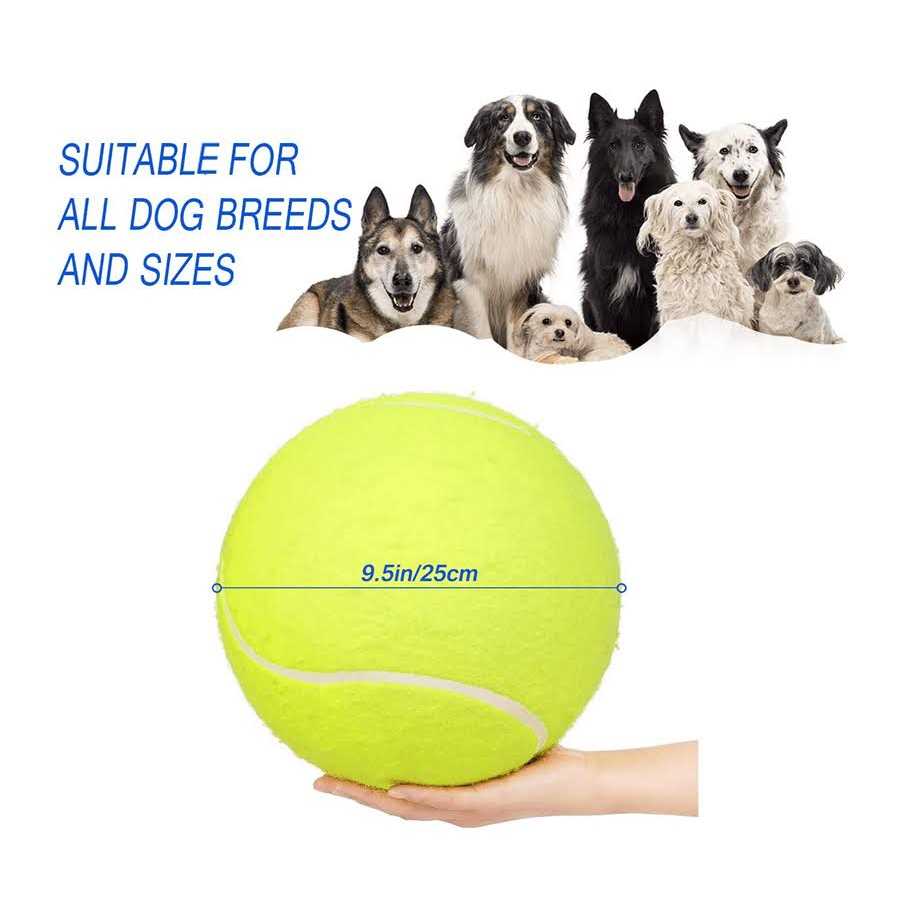 Giant tennis ball (9.5″) Use for signature or pet toys. Great excises toy for your pet and yourself. Please inflate it by yourself after receiving this ball. Made of rubber and felt material. Our dog tennis ball is made of rubber and felt material non-toxic non-abrasive felt is safe for your dog’s teeth. Great fun for your dog Perfect ball for exercise With bright green color and oversized design this ball can attracts your dog’s curiosity guides your dog to run and help increase their physical activity promote metabolism. A great gift for your pet A great gift ball to strengthening the relationship between you and your pet and create beautiful memories with your children friends and family. A funny ball toy Our giant tennis ball is great for you training chasing and playing with your beloved dog in parks grasses yards swimming pool and so on.