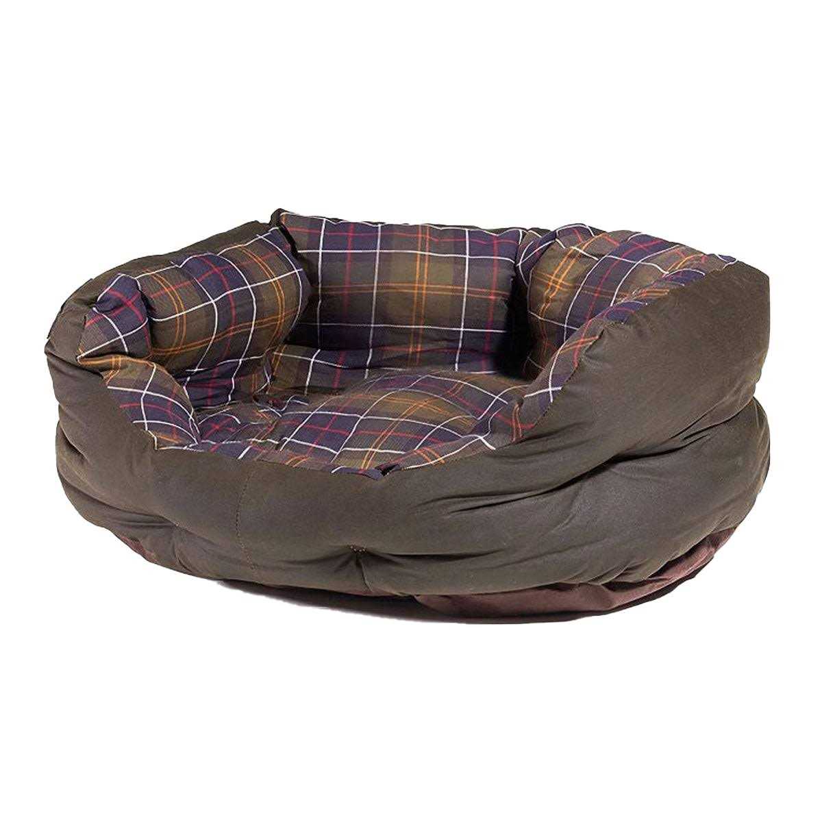 Wax/Cotton Dog Bed 30in This stylish slumber bed is crafted with a robust waxed cotton outer and a cosy cotton lining in Barbour’s iconic Classic Tartan. Offering superb comfort and practicality, it’s designed with high sides to keep your canine companion cosy and secure, plus a dropped front for easy access. The cushion pad is removable and washable for added convenience. Also available in 18″, 24″ and 35″.