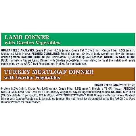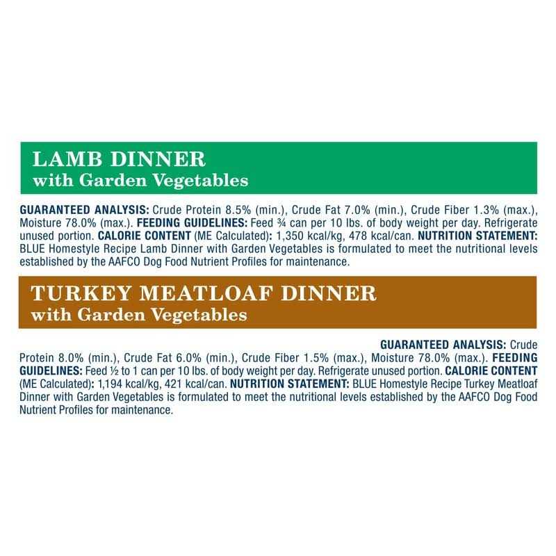 - Contains one (1) variety pack of Blue Homestyle Recipe Adult Wet Dog Food, Turkey & Lamb Pate 12.5-oz cans (6 count- 3 of each flavor)