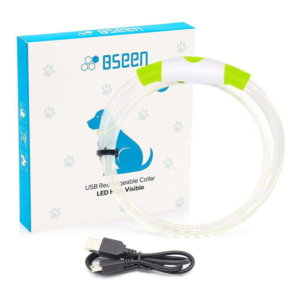 Bseen LED Dog Collar, USB Rechargeable Glowing Pet Collar, TPU Cuttable Dog Safety Lights for Small Medium Large Dogs
