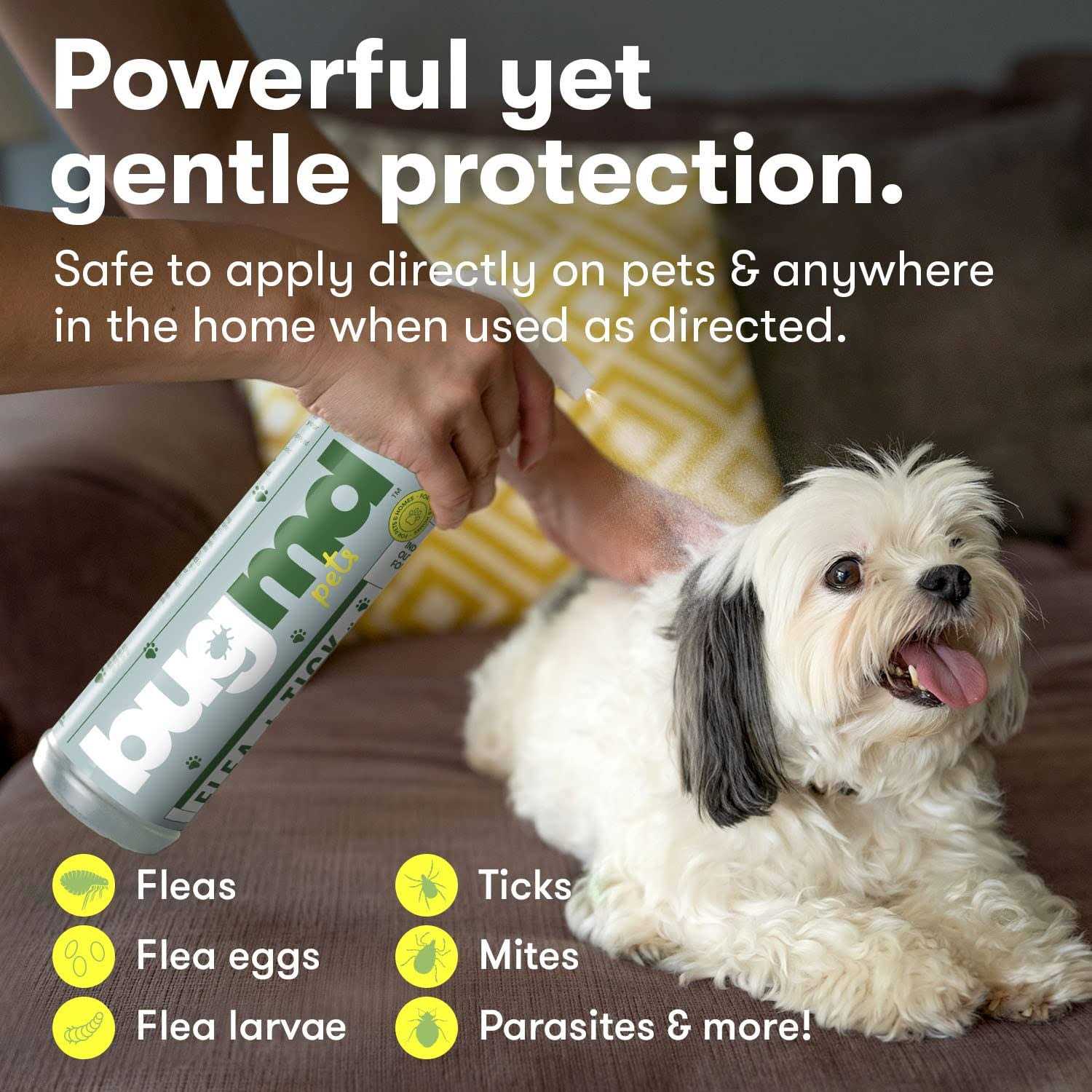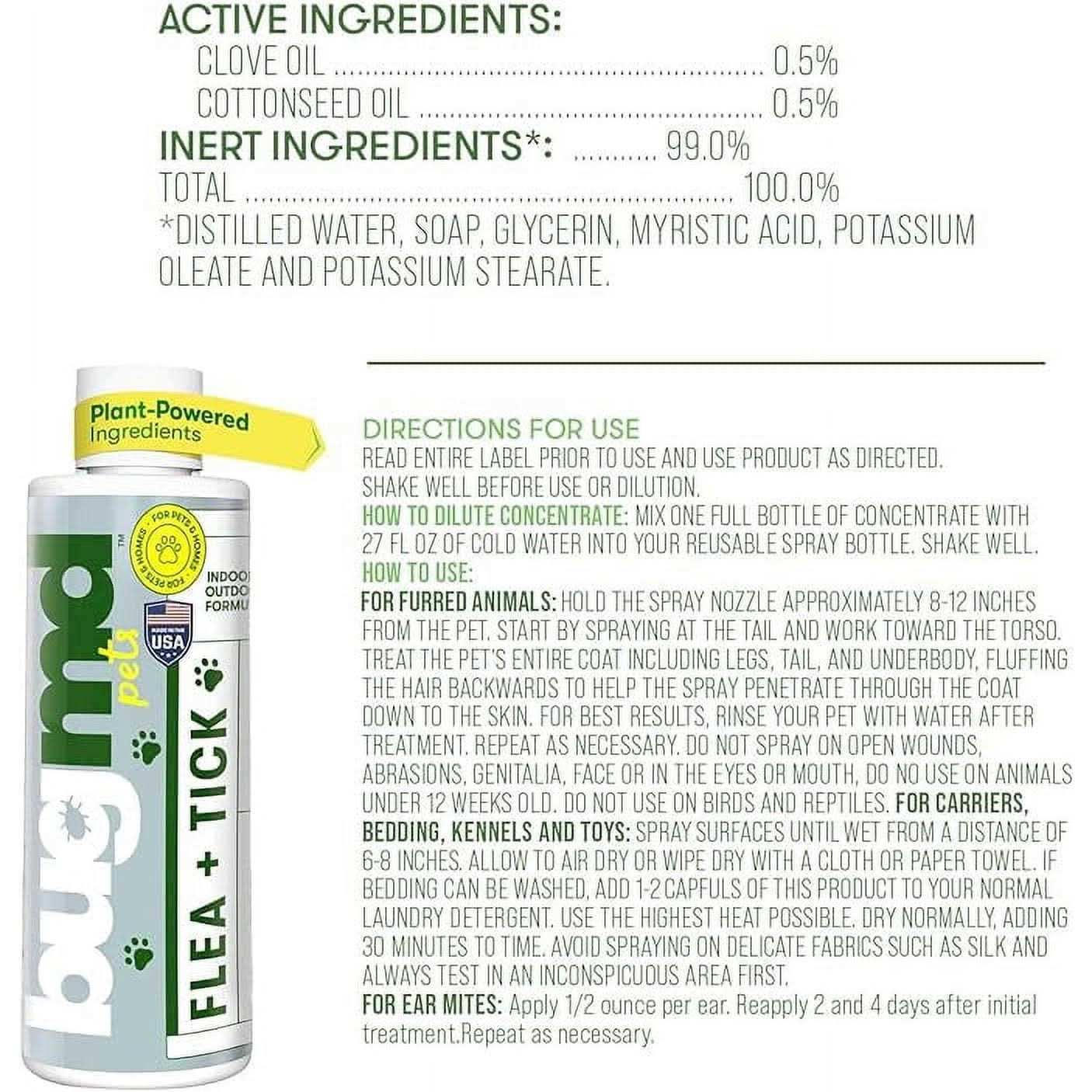 BugMD Flea and Tick Spray Concentrate is a plant-powered tick and flea spray for cats, dogs, rabbits, hamsters, ferrets, and other common furred animal companions. Spray it on pet beds, carriers, kennels, play areas, and maximize as a laundry additive for your pets bedding and blankets to help control fleas and ticks in these pet spaces.
