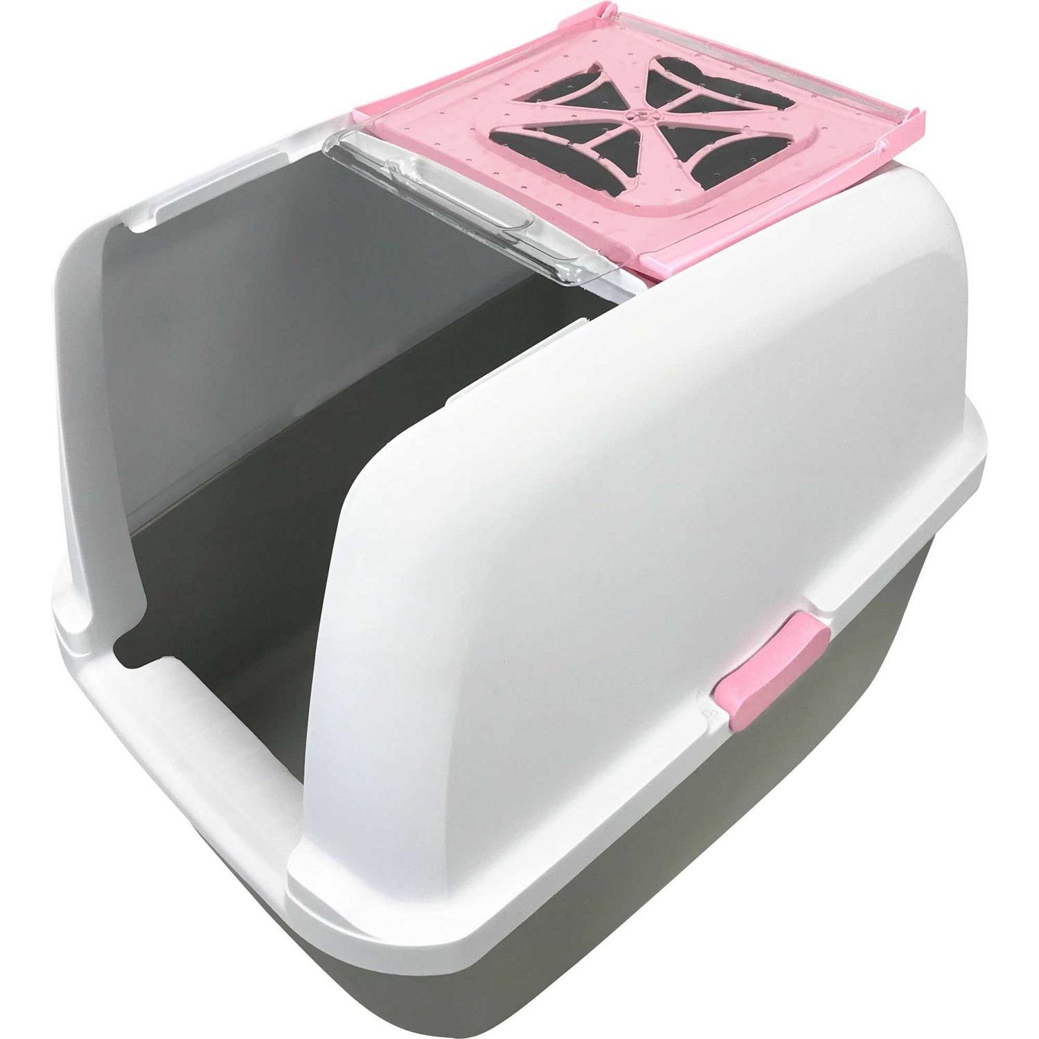 Catit Hooded Cat Litter Pan provides privacy while retaining the litter inside the pan. The large hood lifts up for easy access for cleaning while the built-in bag anchor helps keep the bag open and frees hands for scooping. The carbon impregnated filter effectively traps and removes litter box odors. The Catit Hooded Cat Litter Pan is made of durable plastic and it is a great way to give your cat the privacy it needs.