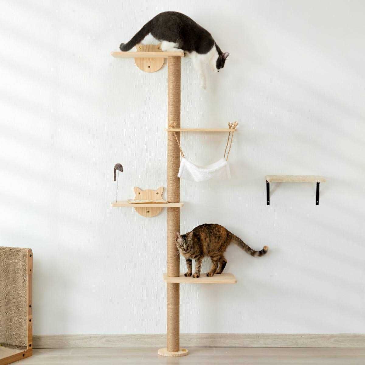 4-Tier Cat Tree Shelf Wall Mounted Scratching Post with Hammock