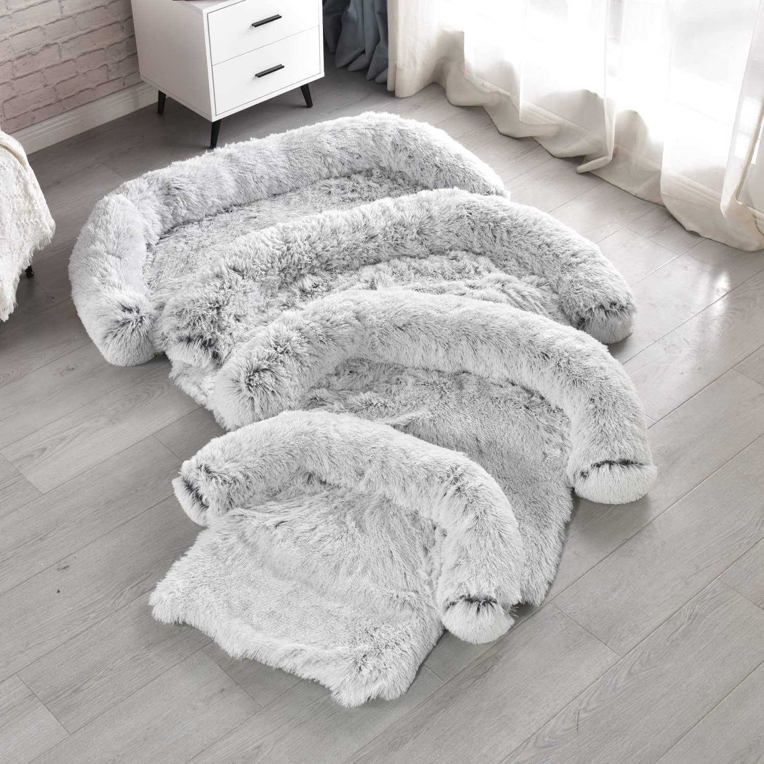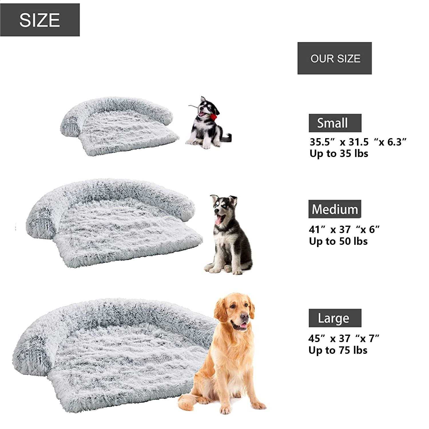 PROTECT YOUR FURNITURE: 100% WATERPROOF DOG BED – Equipped with a full-coverage inner liner to help protect the filling from accidents (The outer cover is NOT waterproof). The design of raised edge can provide support for the head and neck, And it can protect the armrest and backrest of the sofa. HIGH QUALITY MATERIAL: Pet Furniture Protector is made of durable nylon and luxurious faux fur, provide a warmth and safety, comfortable quality sleeping environment for pets. stuffed with eco-friendly fiber, a combination of comfortable and breathable, which offering joint and muscle pain relief. Product Dimension: The Large size pet furniture cover measures 41x37x6″. Quilted pad has non-slip backing to ensure the furniture cover stays in place. SAFE & SECURE: To keep from shifting and sliding, the cover protector is designed with cushion anchors to keep it fastened security; this helps improve pet safety and overall furniture protection EASY CARE – The pet furniture cover is removable from the polyester fiber filled bolster. Simply unzip and remove inner bolster, Machine wash fabric cold, tumble dry low. ITEM: Sofa Slipcover br Material: luxurious faux fur br APPLICATION -Suitable for all types of Furnitures, especially for sofa and bed, or directly put it on the floor. br Available in multiple colors: Silver Gray, Light Brown, Dark Grey, Black, Pink, Khaki br br Size: /b br The Small size pet furniture cover measures 35Lx31Wx5H”. br The Medium size pet furniture cover measures 41Lx37Wx6H”. br The Large size pet furniture cover measures 45Lx37Wx6H”. br The X-Large size pet furniture cover measures 51Lx41Wx7H”. br Easy To Clean: Our pet bed can completely machine washable, gentle cycle, Tumble dry and low heat. br br Note: /b br 1、The cover is NOT waterproof. Please remove the spills immediately. br 2、Because of Vacuum packaging, please shake, pat the sofa slipcover, and wait for 1-2 days to make it back to fluffy status before using! br