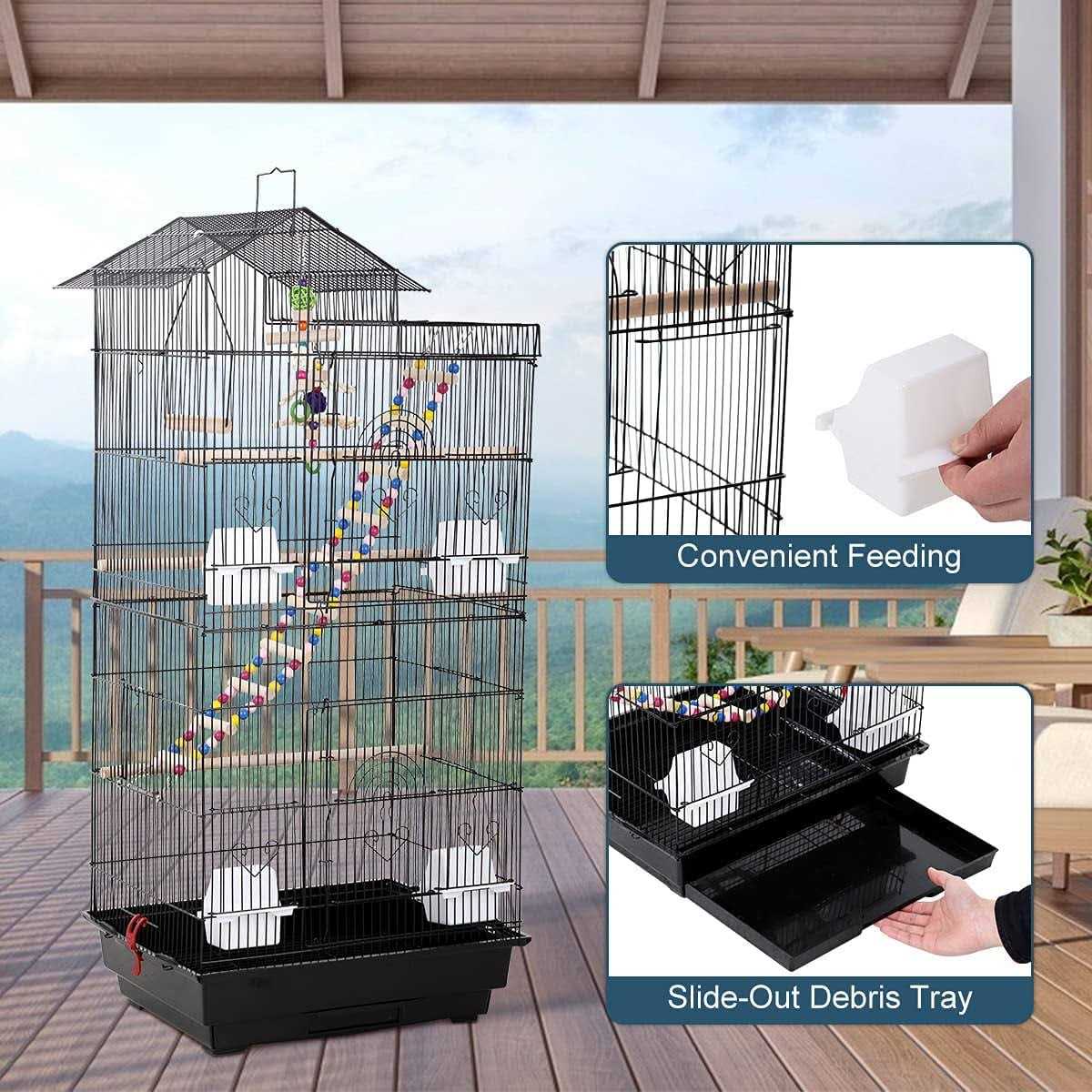 Dkeli 39 Inch Big Bird Cage Study Parakeet Cage Aviary with Accessories Roof Top Flight Parrot Cage with Ladder and Swing Jaulas para Pajaros for Small