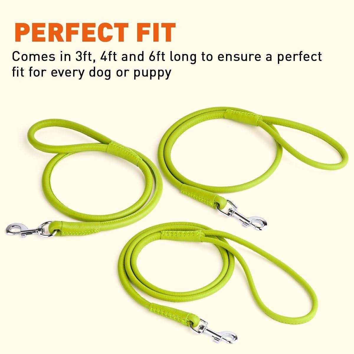 These fine 100% genuine cow leather leads bring together simplicity and elegance thanks to their elaborate workmanship. Our round leather leads are available in a wide range of 12 beautiful and rich colors. Each lead is dyed, meaning it will not lose it’s color nor will the color come off. All leads are handmade and stitched with wax thread. Our European technology features nylon cord wrapped in leather, therefore they will not stretch or break. Leads are soft and padded for extra comfort, yet remain lightweight and flexible. Featuring multiple lengths and widths to choose from, you will find the suitable product for any breed and size of dog. Perfect for training, walking, biking or pure enjoyment. Matching collars are also available. Go ahead, make your neighbors jealous!