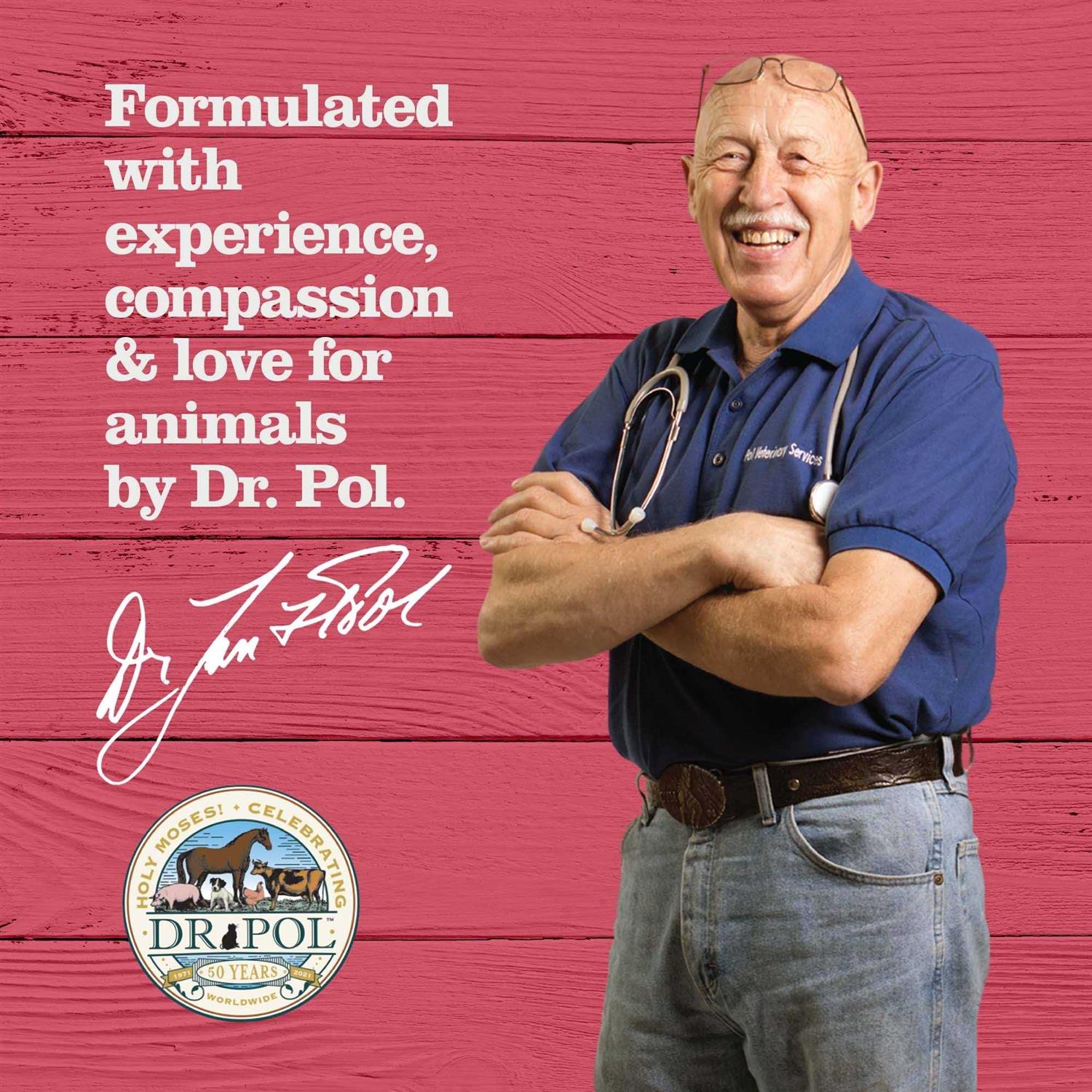 About Dr. Pol Dog Probiotic Chews for Small and Medium Dogs From puppy upset stomach to dog poop troubles, a puppy probiotic can help alleviate many digestive issues. Pol Dog Probiotic Chews offer incredible digestive support and can help with dog upset stomach relief, anti diarrhea for dogs, and overall gut health for dogs. These canine probiotics for small dogs and big dogs contain live probiotics in a tasty chewable, so your pup will enjoy each delicious dose! Probiotic support for dogs can help enhance their wellness, relieve stomach issues, and balance their GI tract. Dog digestive support becomes even more important as your pet ages. Senior dog supplements are vital to a healthy life, and digestive probiotics for dogs can aid in digestion and absorption of nutrients to aid in overall wellness. Dog probiotics for diarrhea and digestive upset relief can help your pup feel their best from the inside out. They can even act as a dog immune supplement, as the digestive tract is where the immune system thrives. A pet probiotic is the finishing touch of a well-rounded diet for your pet, so pick up Dr. Pol Dog Probiotic Chews today!