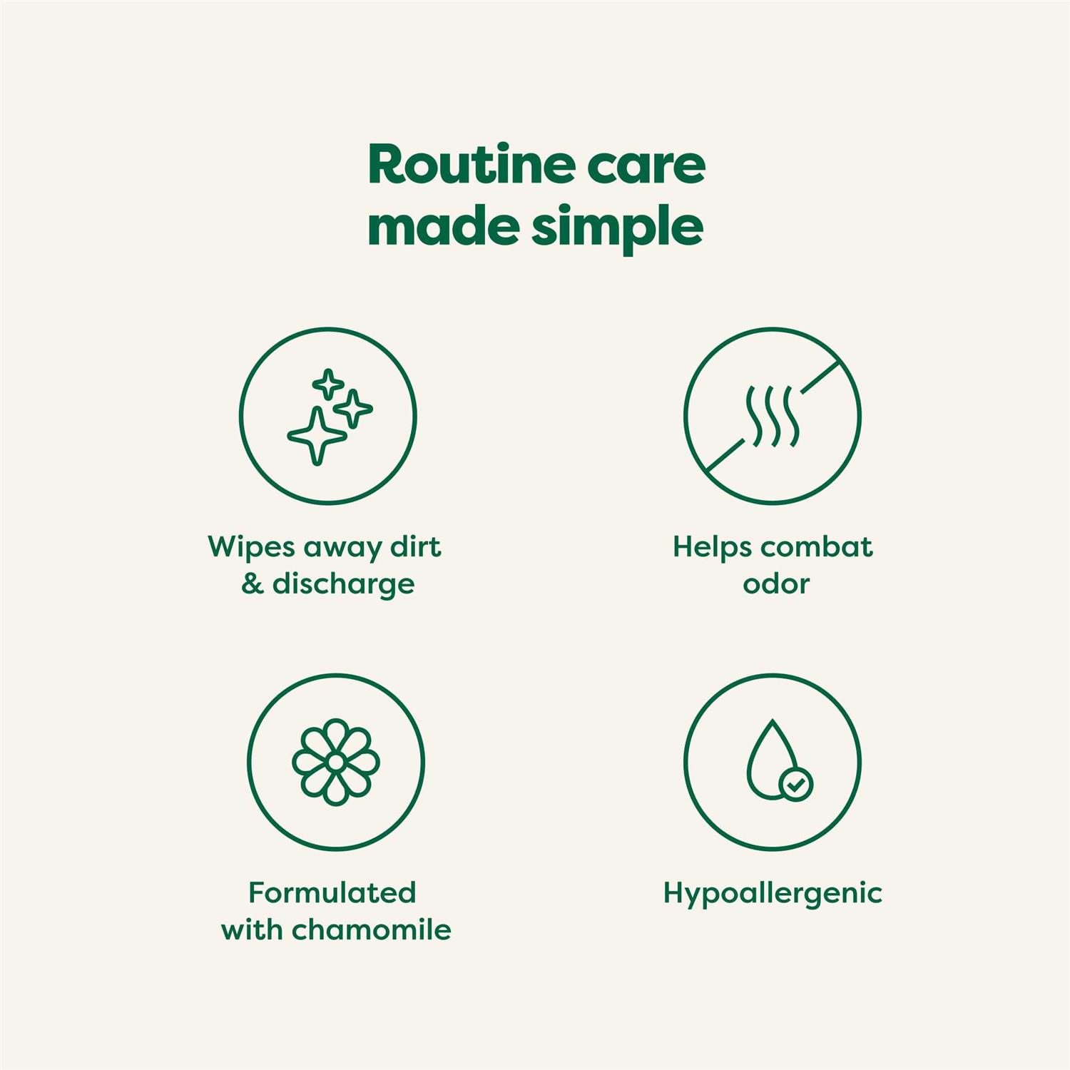 Cleanse your dog’s eyes and reduce tear stains in a blink with Earth Rated Hypoallergenic Plant Based Fragrance Free Dog Eye Wipes. These hypoallergenic eye wipes are formulated with calming chamomile and the perfect amount of moisture. Each wipe is made with plant-based viscose fibers—creating a super soft, durable material that gently and effectively lifts dirt, discharge, and brown or reddish stains from around your pup’s eyes. Plus, the five by five inch wipes are large enough to give both of your pal’s eyes a good clean in just a few swipes.