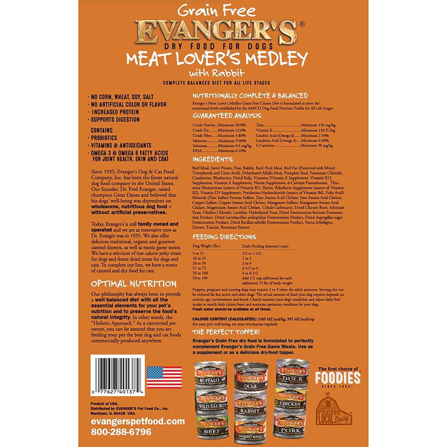 Evanger’s Grain-Free Meat Lover’s Medley with Rabbit Dry Dog Food
