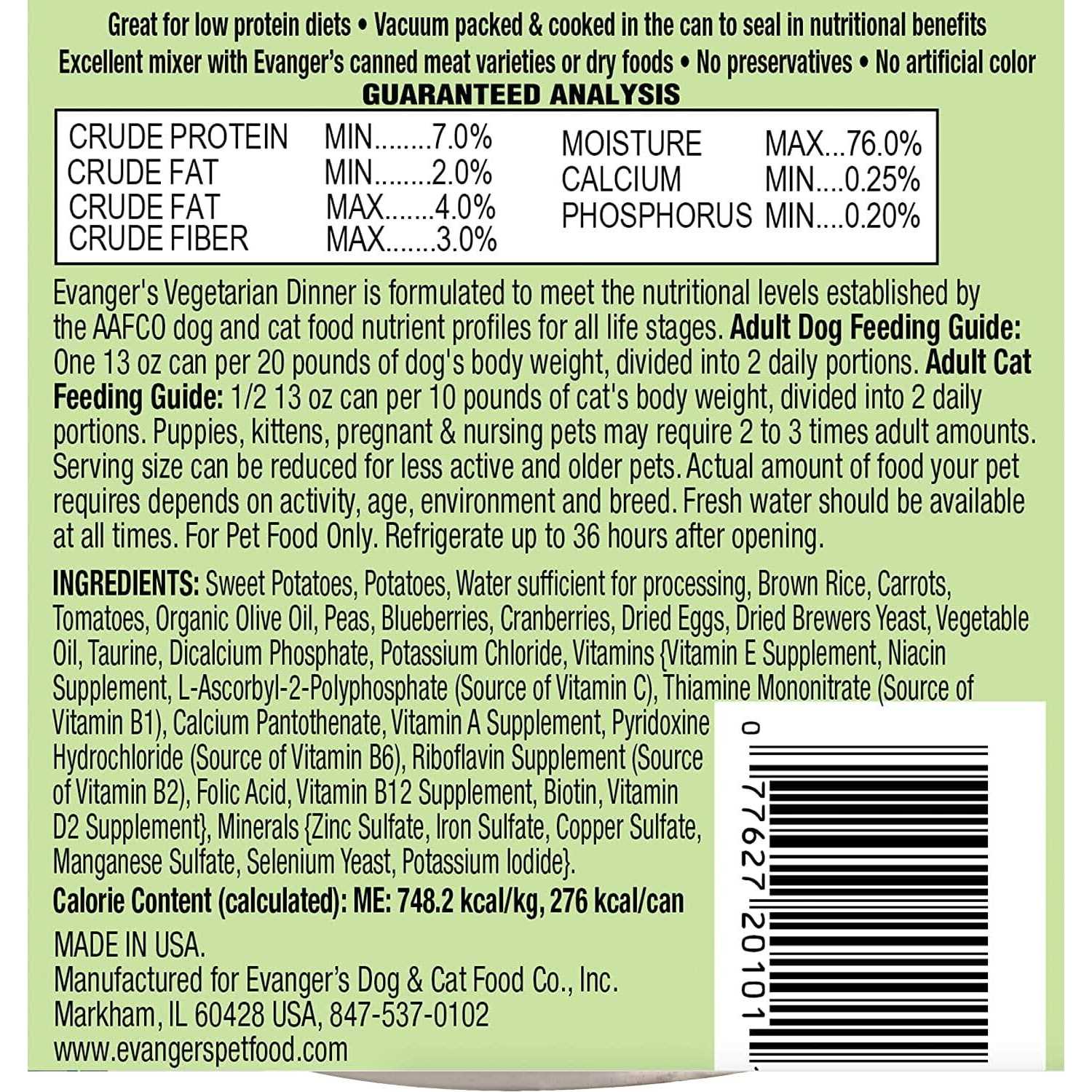 Evangers Low Fat Super Premium All Fresh Vegetarian Dinner Canine & Feline Canned Food