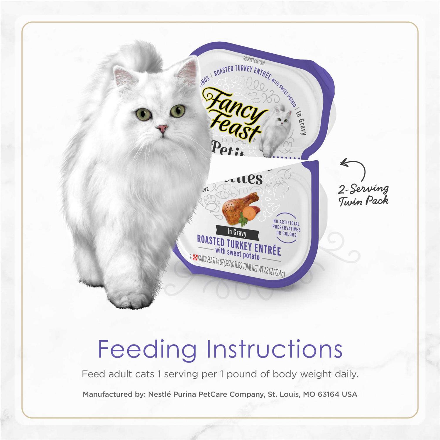 - Purina Fancy Feast Petites come in perfectly sized, single serve wet cat food trays