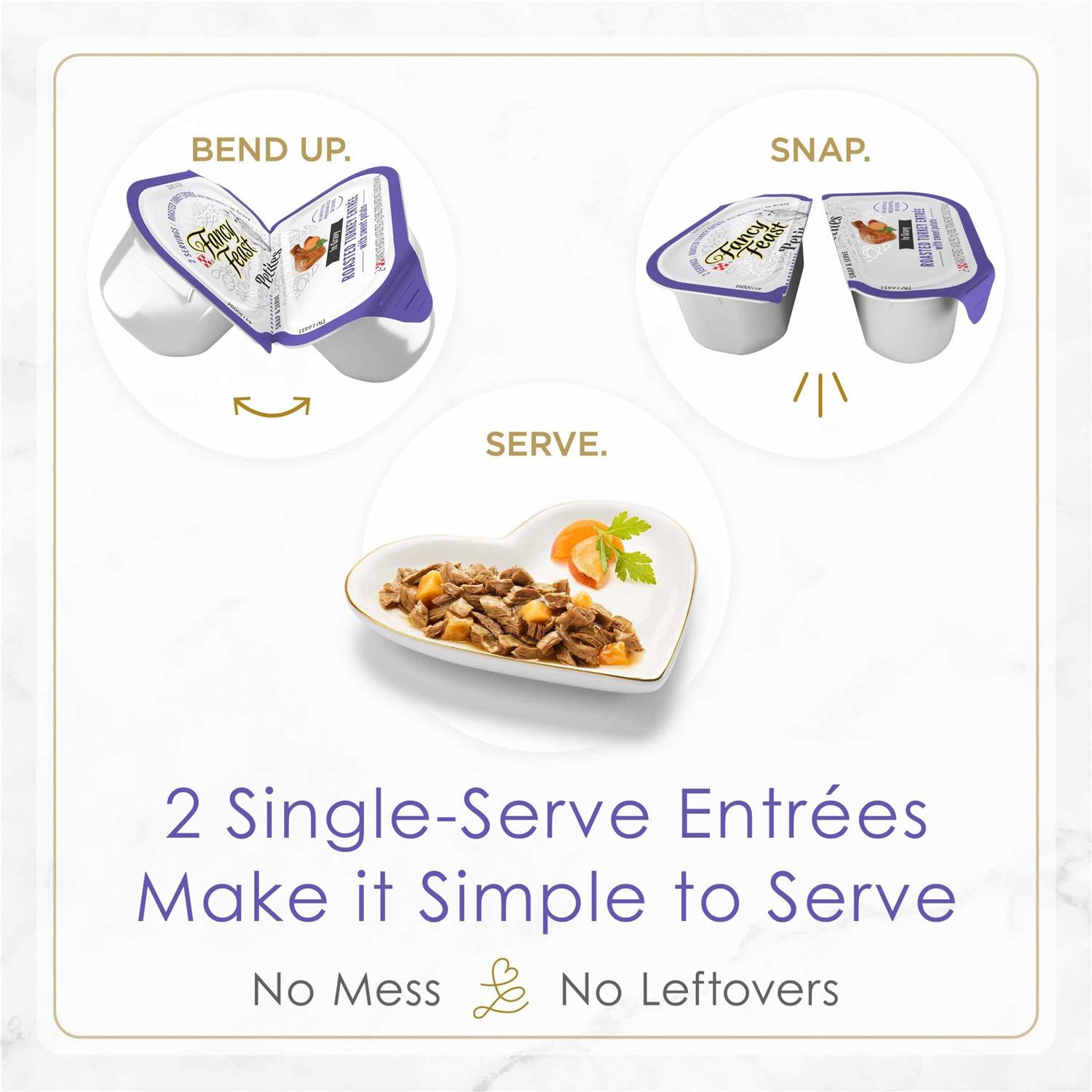 - Fancy Feast gravy cat food individual servings mean no mess and no leftovers