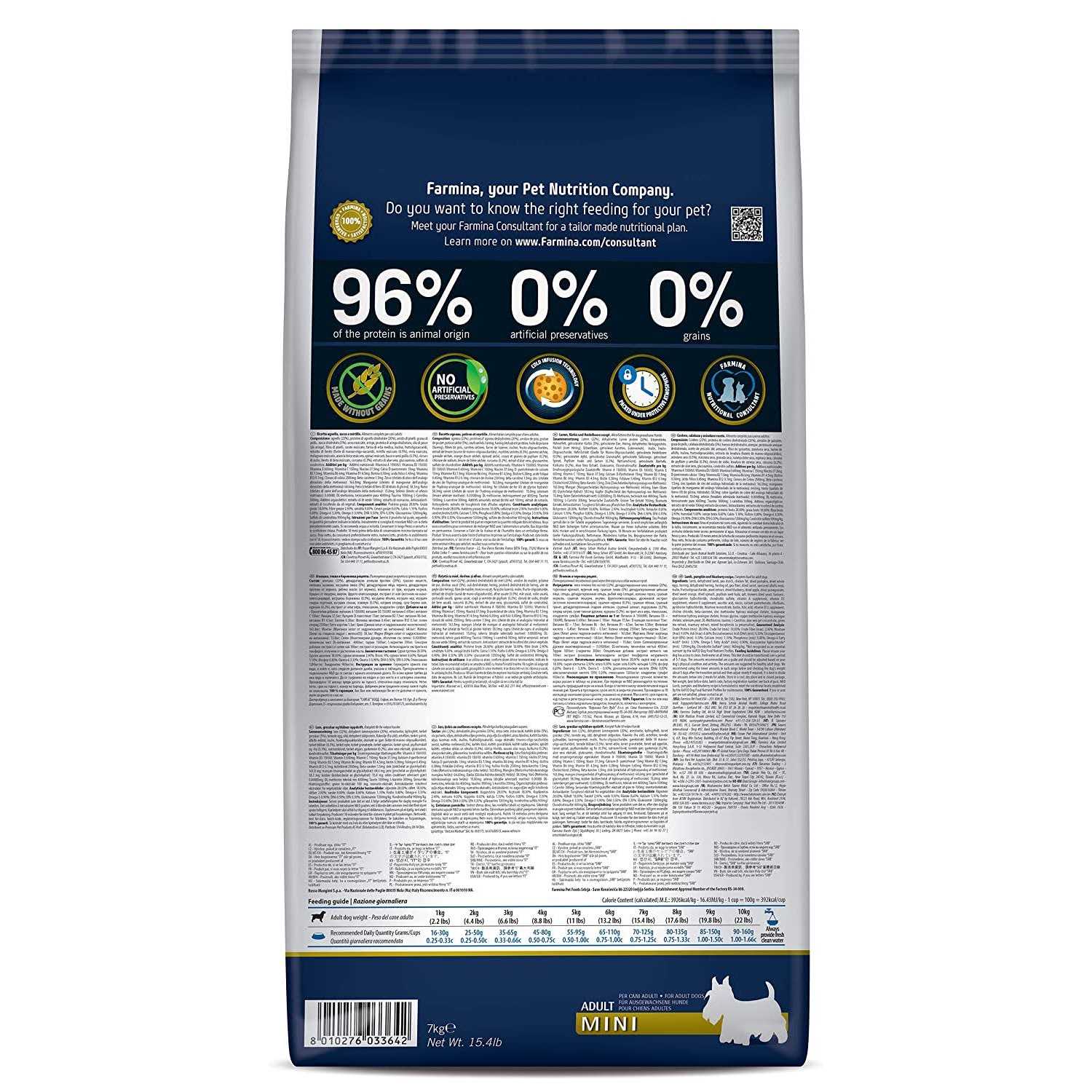 Farmina N&D Pumpkin Formula with Lamb and Blueberry – For Adult Dogs (Mini Breed) Natural & Delicious Grain-Free Pumpkin is our line of all-natural dog food that contains pumpkin and no potato. Scientifically designed for a dog’s carnivorous nature, our food is comprised of 60% high-quality animal ingredients and 40% vegetables, fruits, vitamins, and minerals. Pumpkin is a delicious and healthy vegetable that acts as a digestive aid, supports the immune system, a source of beta-carotene, and has anti-inflammatory actions. Meets the nutritional levels established by the AAFCO Dog Food Nutrient Profiles for all life stages.