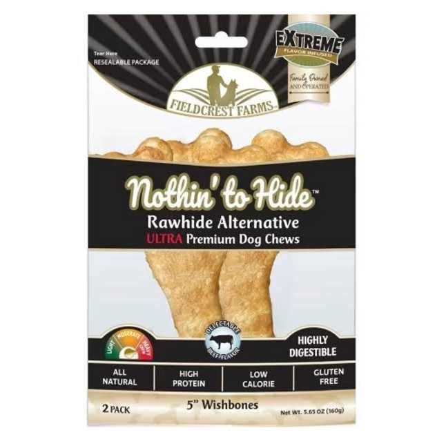 Fieldcrest Farms, Nothin’ to Hide 7″ Beef Ultra Wishbone Dog Treat, 2 Pk