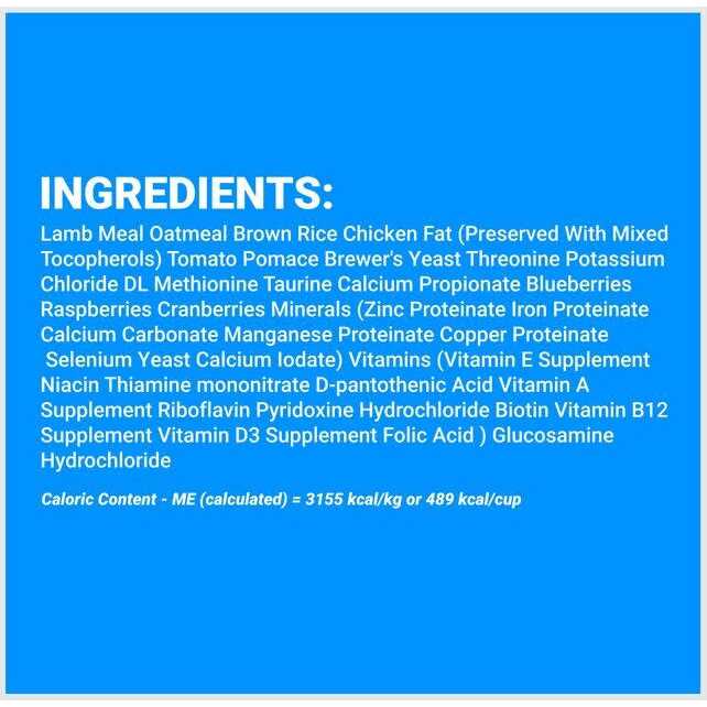 Made using Grass Fed Lamb from Australia without added hormones or antibiotics as the single protein and only two wholesome grains. This formula is free of corn, wheat, soy, potato and peas making it optimum for daily feeding or sensitivities. The chicken fat used in FirstMate Pet Foods is processed free of protein, eliminating the risk of allergies derived from chicken.