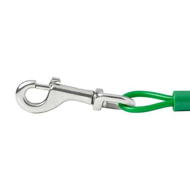 Frisco Easy Grip Stake with Tie Out Cable, Large, 30-ft; If you don’t have a fenced-in yard, a tie-out cable and stake system provides dogs with secure access to the yard so they can take care of potty business. It creates a safe zone that allows dogs the freedom to go outside while preventing them from escaping the yard if they get distracted. That way, you can make sure your pup makes good use of his outdoor time—like answering the call of nature—instead of getting into doggy shenanigans. It’s easy to use—just clip one of the metal swivel clips to the D-ring on the stake, and the other one to the D-ring on your dog’s collar. After your dog “goes”, simply unclip and they’re ready to come back inside. These tie-out cables are available in a variety of lengths and widths so you can find the one that’s just right for your pup.