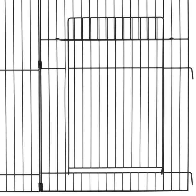 Designed for indoor use and can be set up in many shapes to fit your needs. Eight-panel design—each panel measures 18 inches wide and 29 inches tall. Constructed with sturdy metal wire, with durable black e-coating or white powder coating. Features a small door on one panel for safety, security and easy access. Collapsible design is easy to transport where your pet needs it and easy to store, as well. Ideal for guinea pigs, rabbits, ferrets and chinchilla.