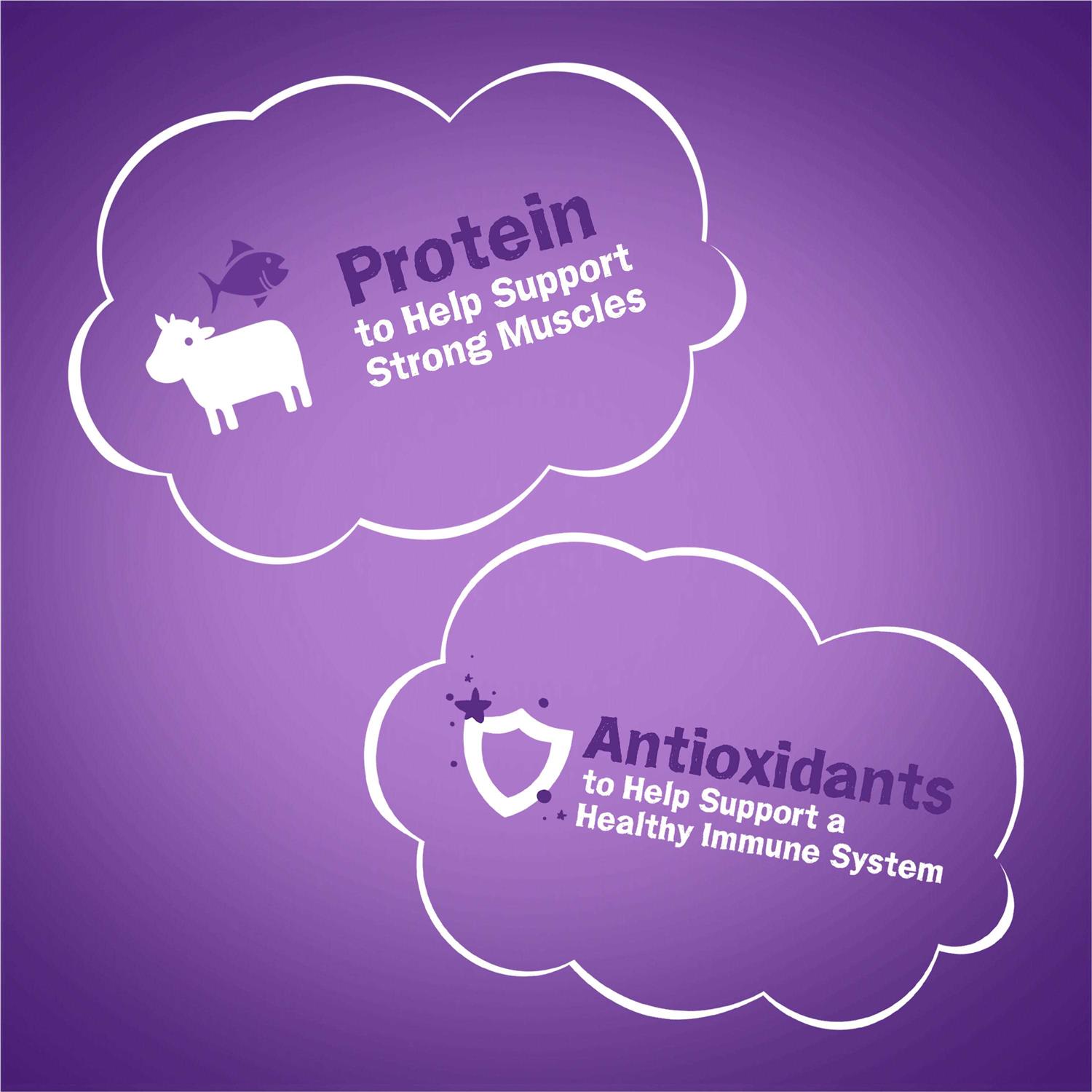• Cat-approved for taste, the delicious protein in each Purina Friskies dry cat food recipe helps support her lean muscle strength.