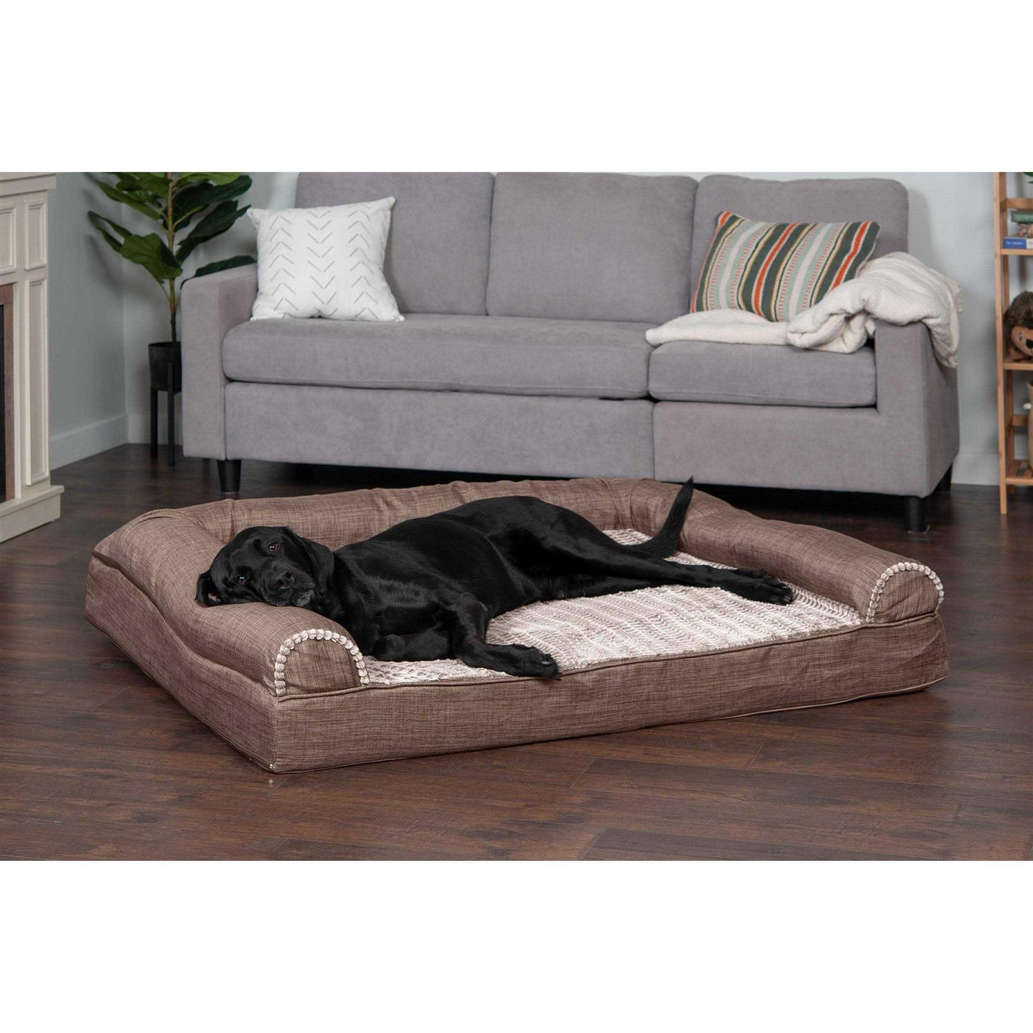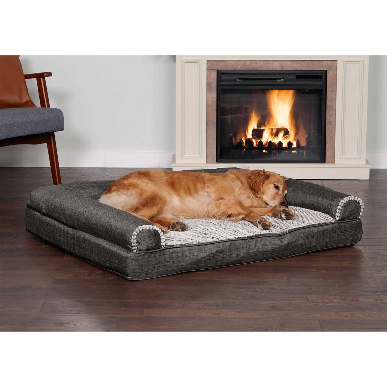 FurHaven Luxe Fur & Performance Linen Cooling Gel Sofa Dog Bed – Large – Charcoal