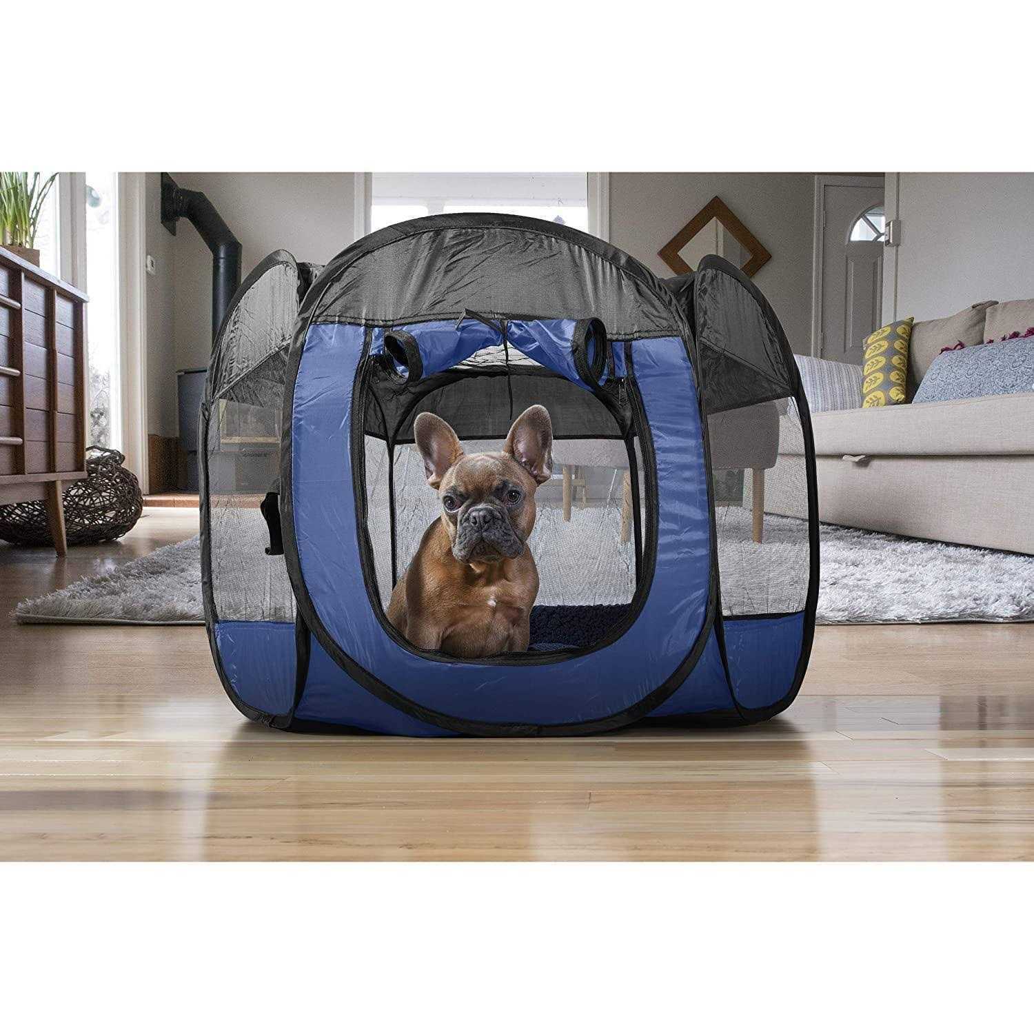 Keep your frisky bundle of fun just where you want her with the FurHaven Pet Playpen. This portable pen is not only lightweight and easy to transport, but the 360-degree open-mesh view and zippered side entrance allow your girl to easily enter and exit while getting a great view of her surroundings. Whether you’re at the park, beach or having fun inside, your pet will be safe and secure within her pen. The pen features ground stakes and a removable zippered top so you can rest easy knowing your best bud is happily contained. Easily fold the accessory into the included carry bag and simply spot-wash it with a cloth and mild detergent for an easy clean whenever it needs a spruce up.