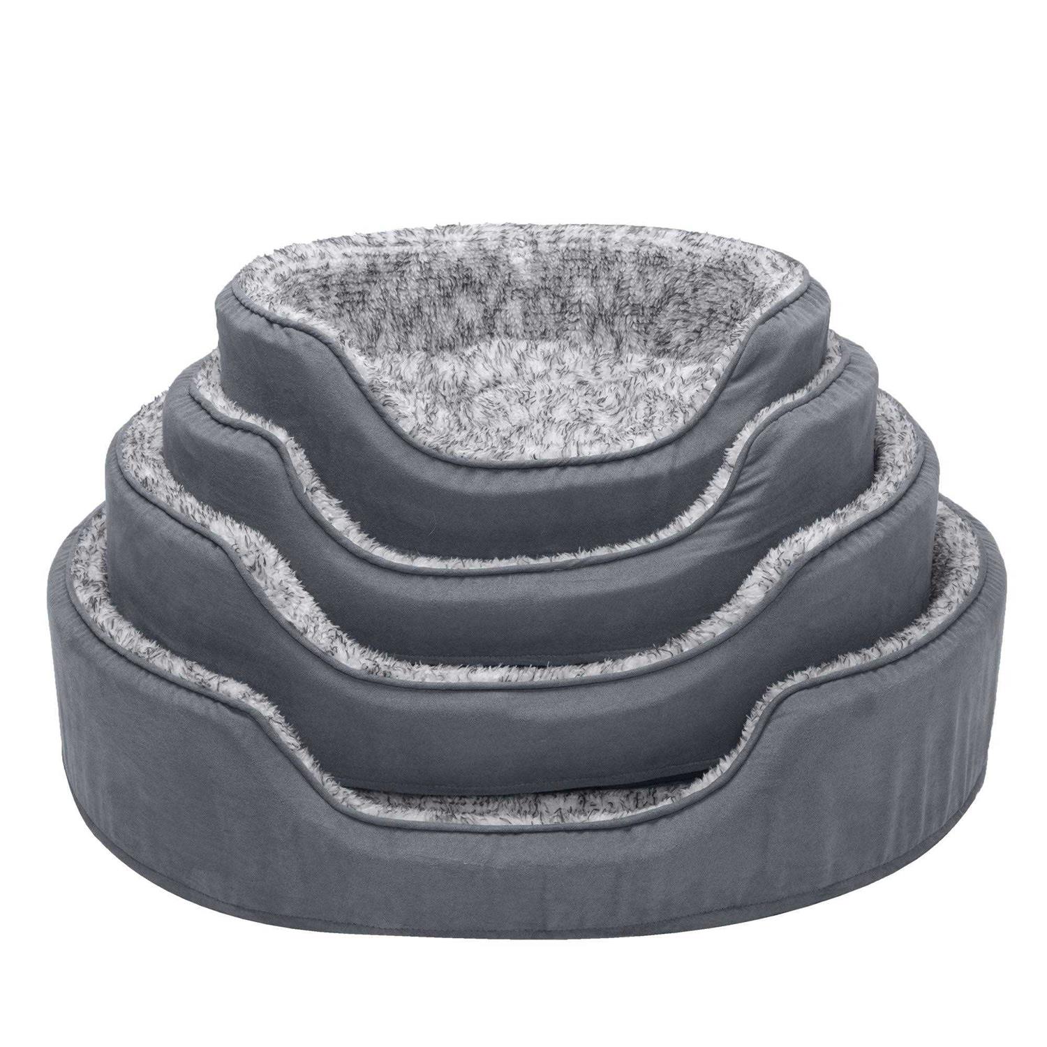 FurHaven Two-Tone Faux Fur&Suede Oval Dog Bed in Gray | Small