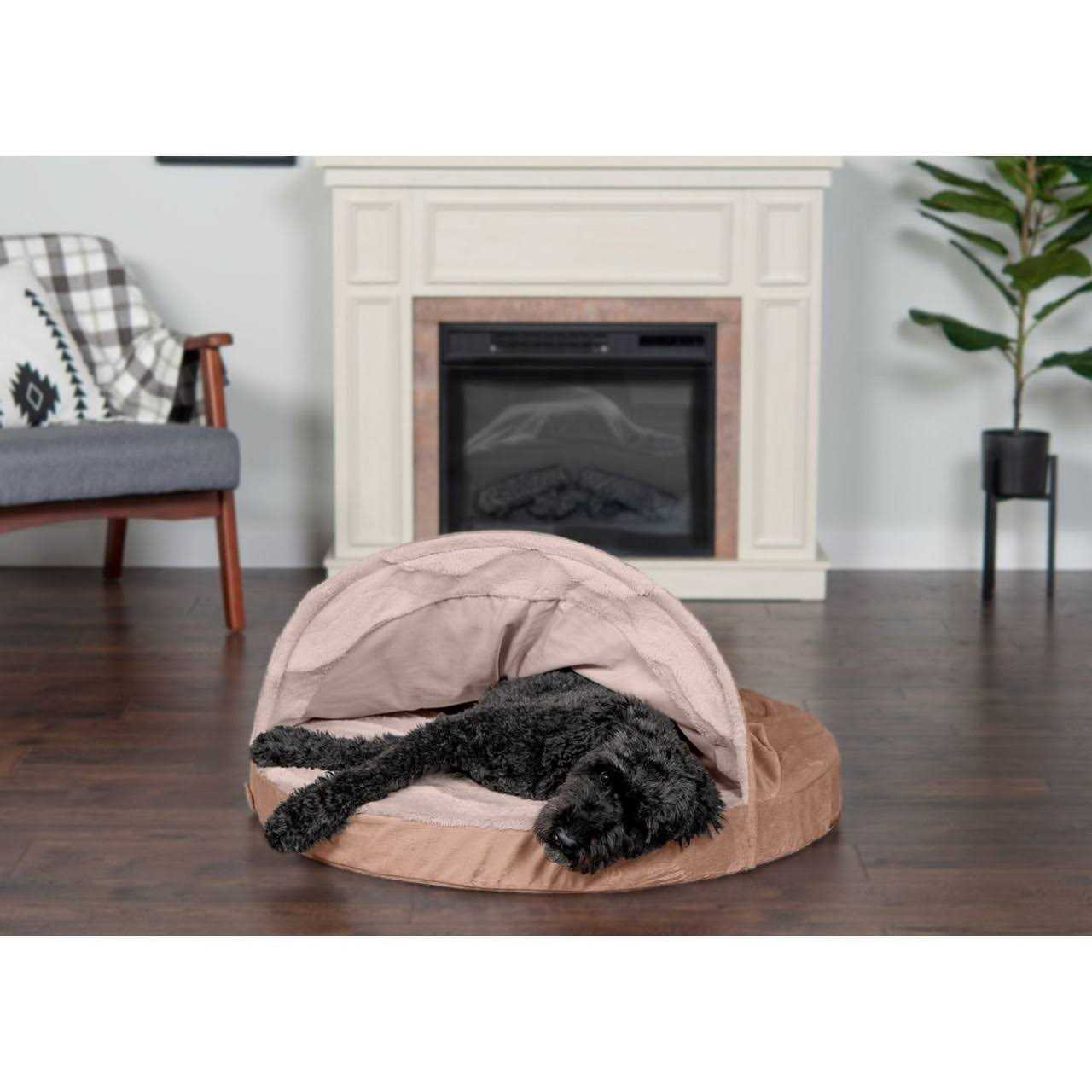 FurHaven Pet Products Snuggery Pet Beds are perfect for pets who love to burrow into blankets and other cozy spots! With the top part of the bed functioning as a soft, shapeable blanket, snuggeries are constructed to let your dog or cat burrow and snuggle into the bed. The soft hood feature can be used with or without the flexible plastic hoop to best suit your pet’s sleep style and burrow habits. The plastic hoop helps your pet get under the soft hood and does not stay up so that your pet stays covered and cozy! The bed’s sleep surface is fully lined in super soft and plush faux fur and provides a pleasant retreat for your pet’s privacy, warmth, and comfort! The outer layer of fabric is a lush and smooth faux velvet to match your home decor. The thick mattress, made from a solid piece of orthopedic foam, will promote your dog or cat’s ideal posture and joint health. Your pet will love their new cozy pet bed while you’ll love having more room in your bed and less pet dander and fur! The cover is zippered and removable for easy care washing.