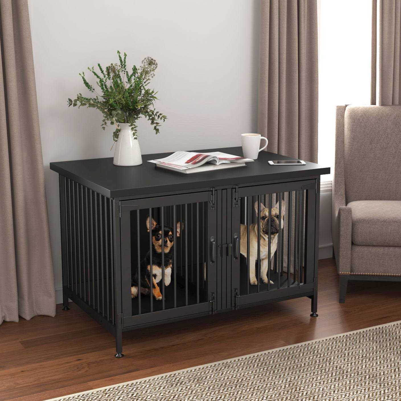 This is a very sturdy super heavy-duty dog crate that uses thick steel tubing instead of tiny wire, making it anti-chewing and durable. With its large countertop and high-strength construction, you can even use it as a TV stand. Max Static Load Capacity of the Top: 300 lb 2 lockable doors allow for easy entry and exit. The middle partition is also lockable and removable. Use as a kennel for 2 dogs or remove divider to use for 1 dog. Adjustable feet keep it stable on slightly uneven floors; If the door is tilted, adjust the support feet NOTE: The product is not a toy. Children are not allowed to climb into or play in or on the product. Always remove the collar of your pet before it enters the crate. Measure the size, including length, width, and height, of your pet to make sure the size of the product is sufficient size for your pet.