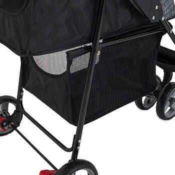 - Canopy opens and closes easily, and conveniently folds up under the canopy hood and out of your pet’s way.