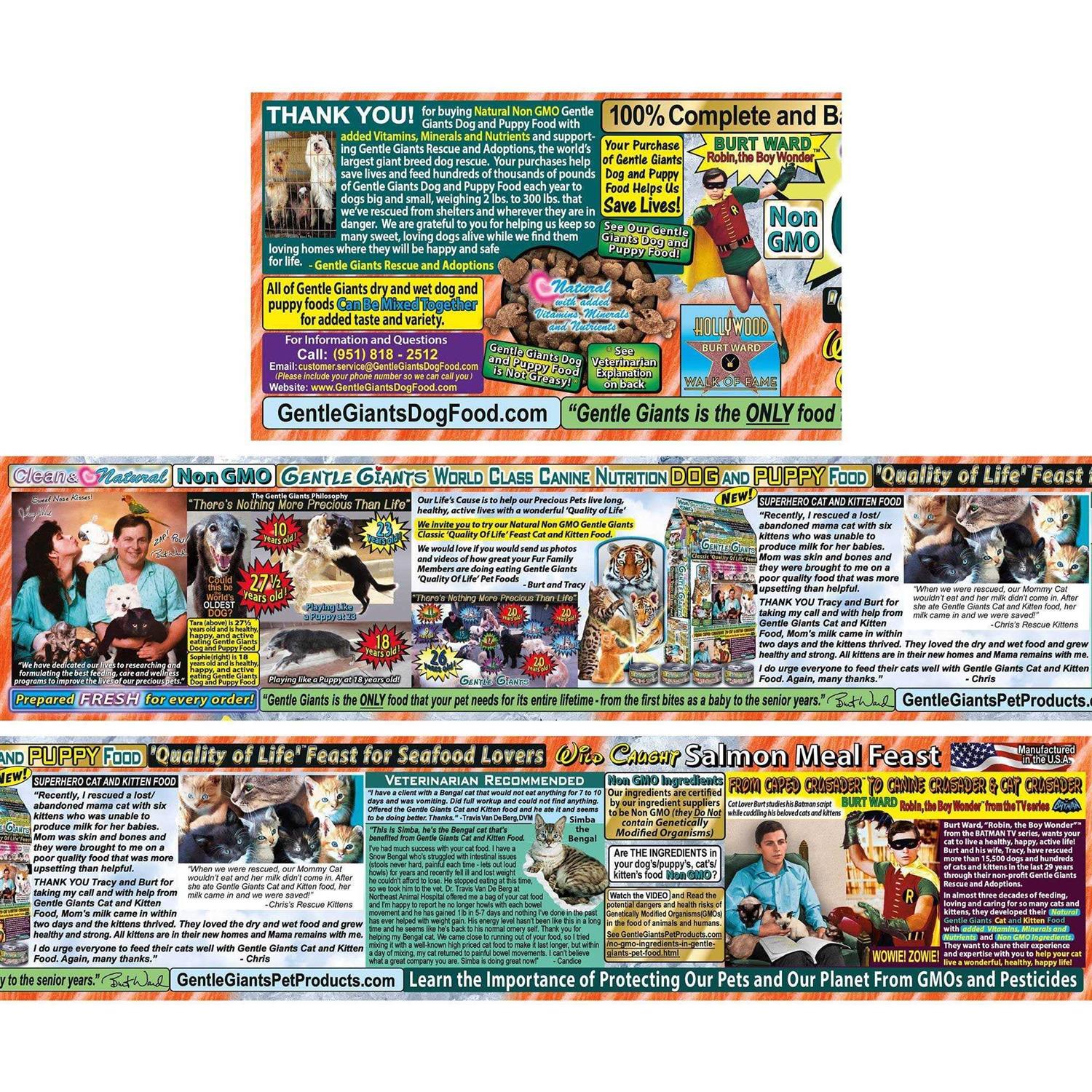 Our life’s cause is to help all dogs live the longest, healthiest, happiest lives possible. Gentle Giants Dog and Puppy Food is excellent for all dogs and puppies of all ages, sizes, and stages of life – from 2 pounds to 300 pounds – from the youngest 3 1/2 week old puppies to the oldest seniors that are 27 years old. They also noticed that the food they were feeding their dogs contained a lot of fat and chemicals that they knew if they were not good for humans they would not be good for dogs. After much research and input from veterinarians and nutritionists, all natural Gentle Giants was created. Feeding 600 lbs. per day of all natural Gentle Giants to the 45 different breeds that they rescue has resulted in many of their dogs living into their late teens and even mid twenties.