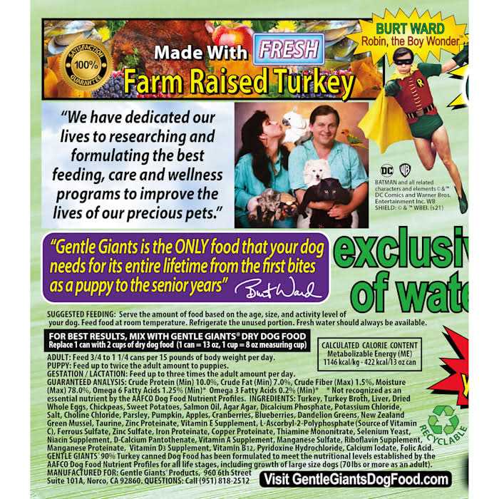 - Gentle Giants World Class Canine Nutrition ‘Quality of Life’ TM Feast 90% Grain-Free Turkey For Meat Lovers Canned Dog and Puppy Food is designed for