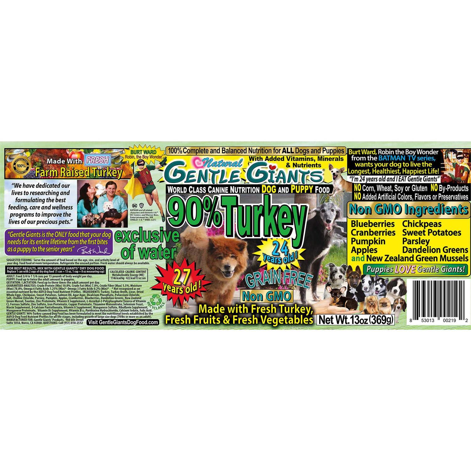 Gentle Giants 90% Turkey Grain-Free Wet Dog Food, 13-oz, Case of 12