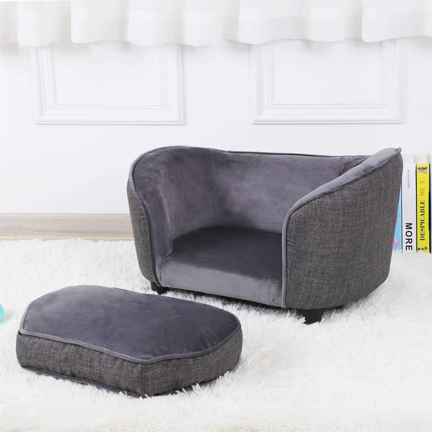 Getifun Pet Sofa Bed, Velvet Dog Couch with Washable Cushion for Small Dog Cat, Gray (Gray)