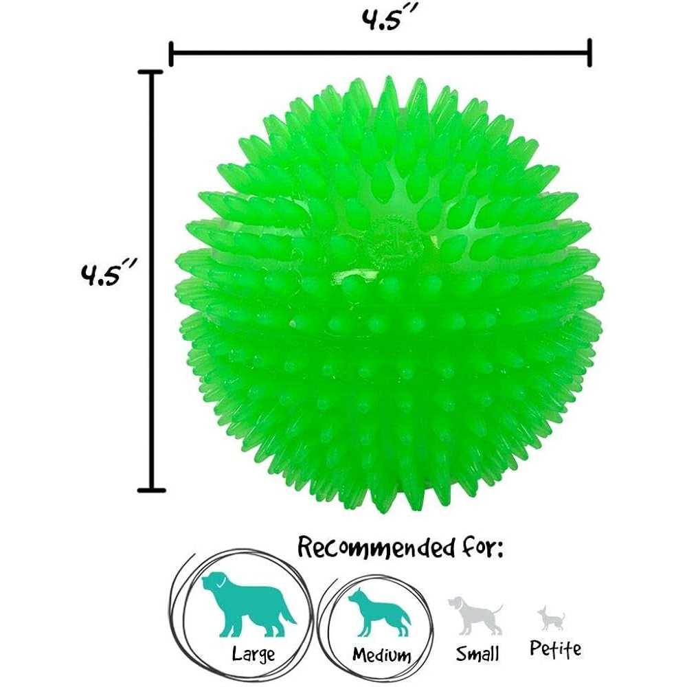 Made with food-grade, BPA-free thermoplastic rubber so it’s safe for everyday play all while standing up to some pretty tough woof-housing! The flashing LED light activates with every bounce to keep your pup chasing after it, adding much-needed exercise and mental simulation for a healthy and active lifestyle. With a loud internals squeaker and a unique gum-massaging spikey texture, these toys are sure to be among your pet’s favorite! For medium and large dogs. Made of food-grade thermoplastic rubber that can stand up to everyday play and is BPA-free Bounce-activated LED light keeps your pet actively engaged Built-in squeaker turns up the excitement during play, while the spikey texture works to massage gums Lightweight TPR allows for the toy to float Adds much-needed exercise and mental simulation that dogs need to stay active, healthy, and at an ideal weight Comes in a variety of bright, attention-grabbing colors to suit your style and pet’s personality. No color choices, based on stock.