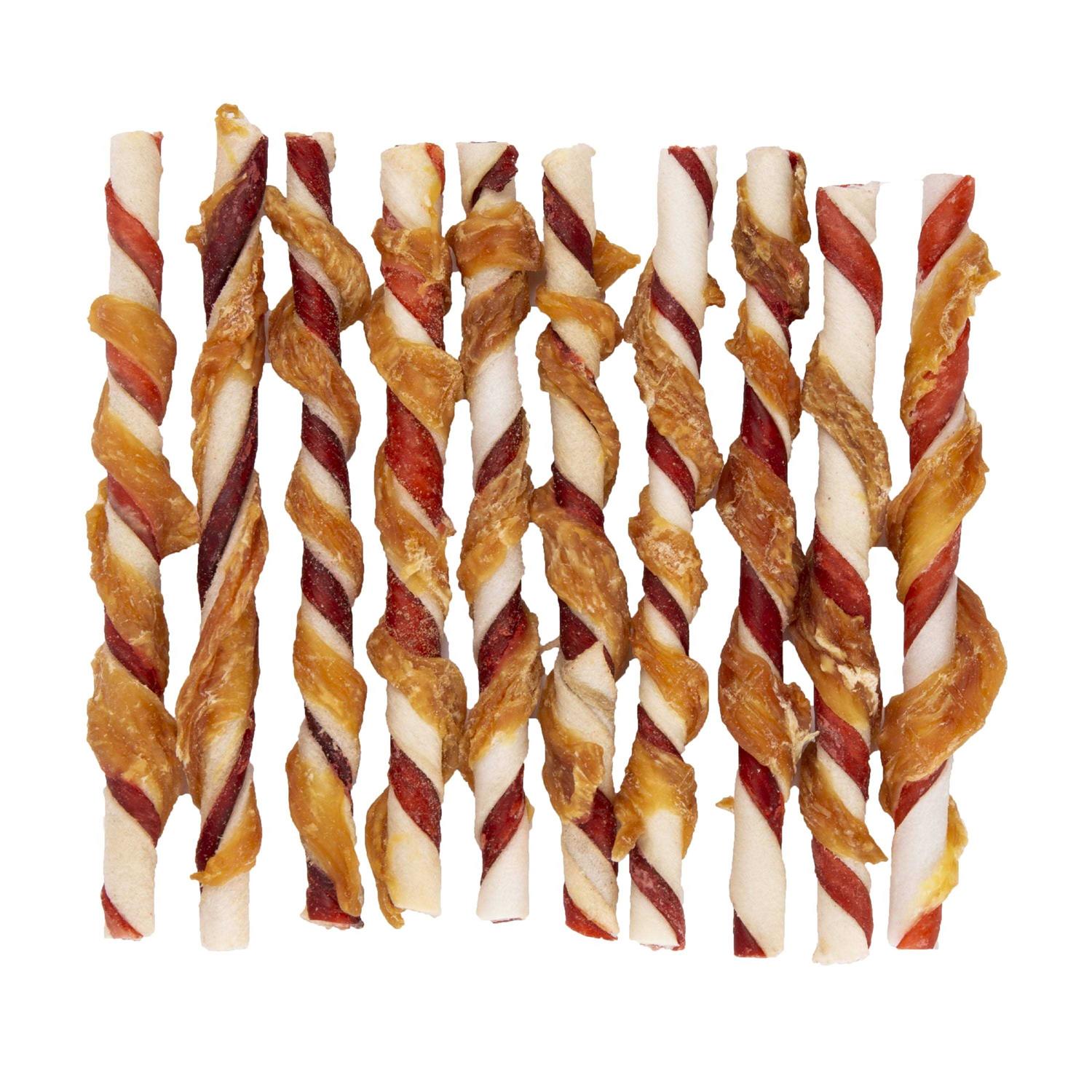 Good ‘n’ Fun brand offers a tasty smorgasbord of flavors that dogs love. These delicious chews are made from the finest ingredients, including real beef hide and real chicken, to create truly delightful, long-lasting treats your dog will love.Tails will be wagging for these flavor-packed Good ‘n’ Fun Triple Flavor Twists. These twist-shaped dog treats are made with a savory combination of three flavors that dogs love most. These delicious chew treats are made from the finest rawhide and pork hide, then wrapped with real chicken to create a truly delightful, long-lasting rawhide treat your dog will love. A good source of protein, Good ‘n’ Fun Triple Flavor Twists are a healthy and delicious way to satisfy your dog’s natural urge to chew. The natural action of chewing also helps reduce tartar buildup and remove plaque. These gourmet, twist-shaped chews make for long-lasting entertainment.Give your dog one Good ‘n’ Fun Triple Flavor Twist per day. For supervised consumption only. Select a chew slightly larger than your pet’s mouth. Discard chunks or fragments. Always provide plenty of fresh drinking water and visit your veterinarian regularly.