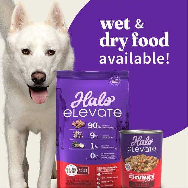 Thoughtfully crafted for incredible taste Slow cooked in a tasty gravy Large, hearty chunks of duck & beef Made with real carrots, white potatoes & brown rice Healthy whole grains Halo Elevate is a NEW, highly nutritious dog food that you can feel confident in feeding your dog. This amazing food is thoughtfully crafted to delight all your dog’s senses, delivering maximum nutrition with incredible taste your dog won’t resist. Given as a complete meal or used as a topper, Halo Elevate wet food is a great way to fuel your dog’s active lifestyle.