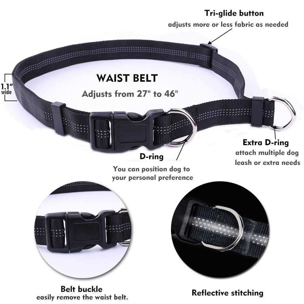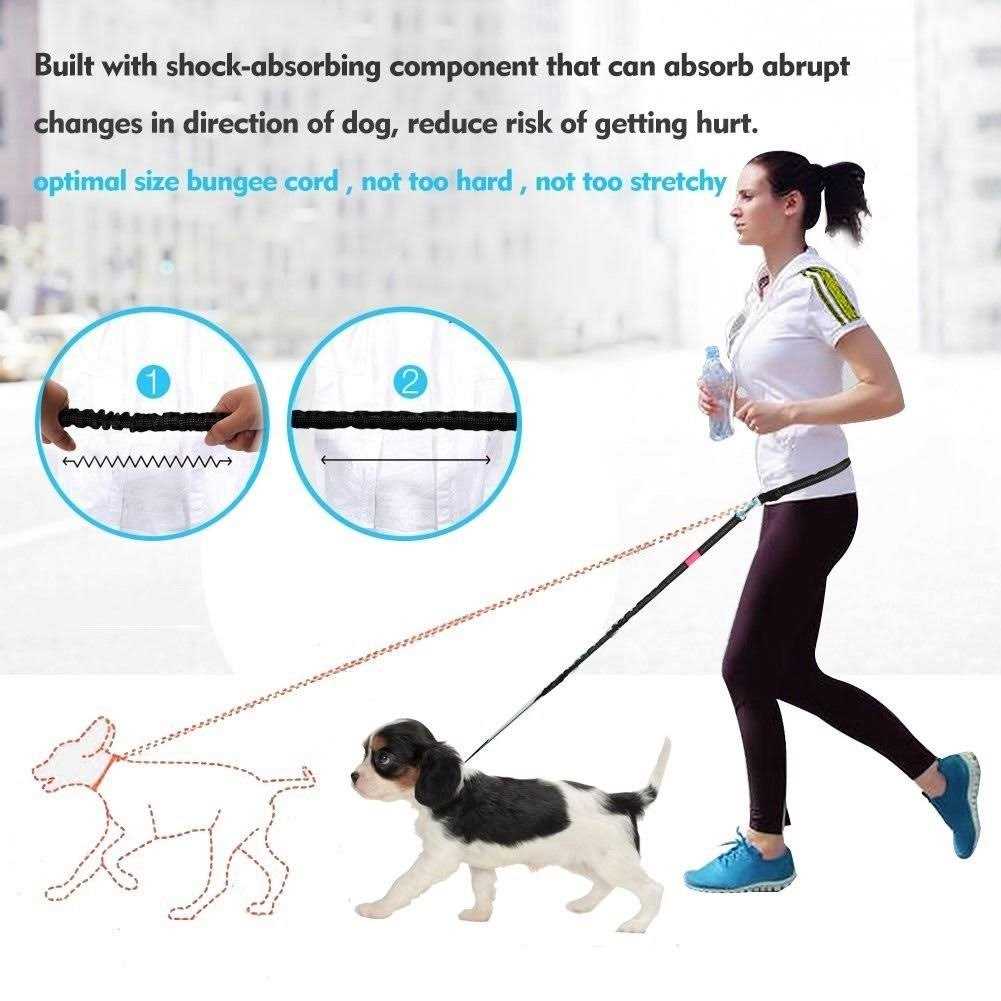 Lanney Hands Free Dog Leash for Running Walking Training Hiking, Dual-Handle Reflective Bungee, Poop Bag Dispenser Pouch, Adjustable Waist Belt, Shock