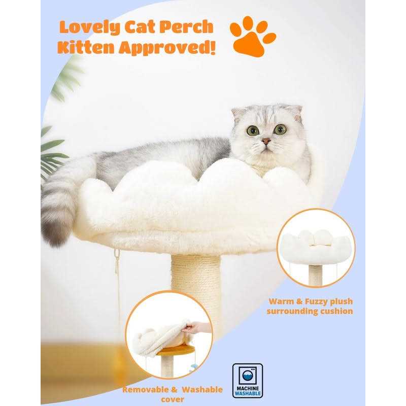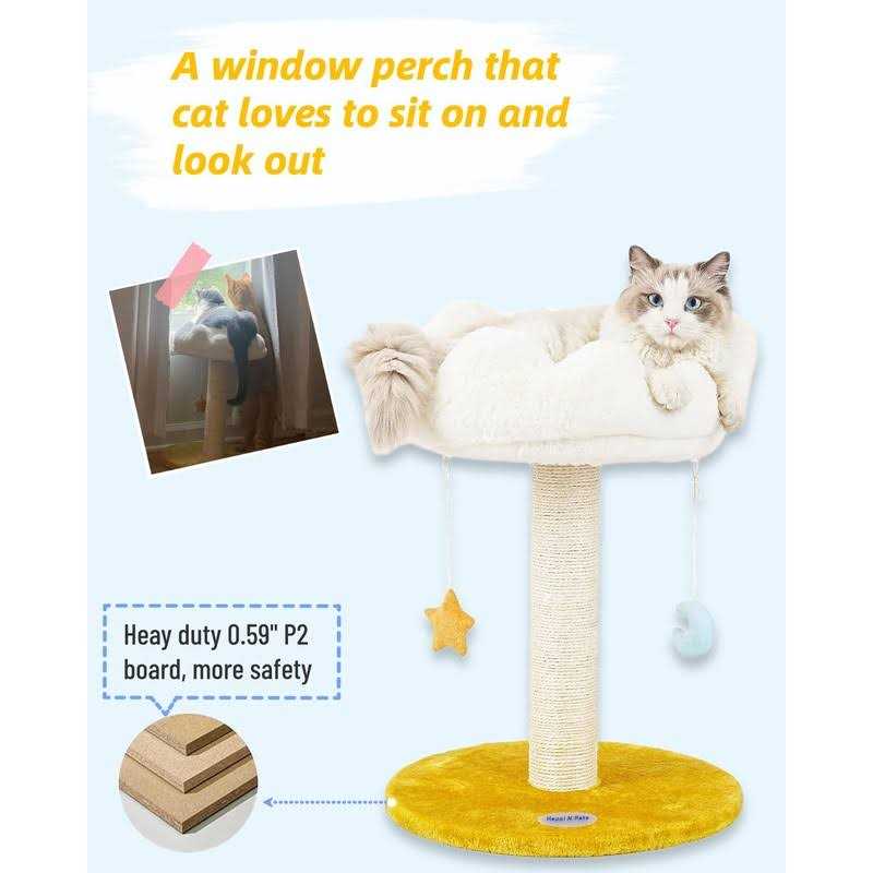 Happi N Pets Cloud Cat Scratching Post with Bed, Cat Tree Tower for Indoor Cats, Nature Sisal Cat Scratcher with Cozy Fluffy Perch for Kitten & Adult