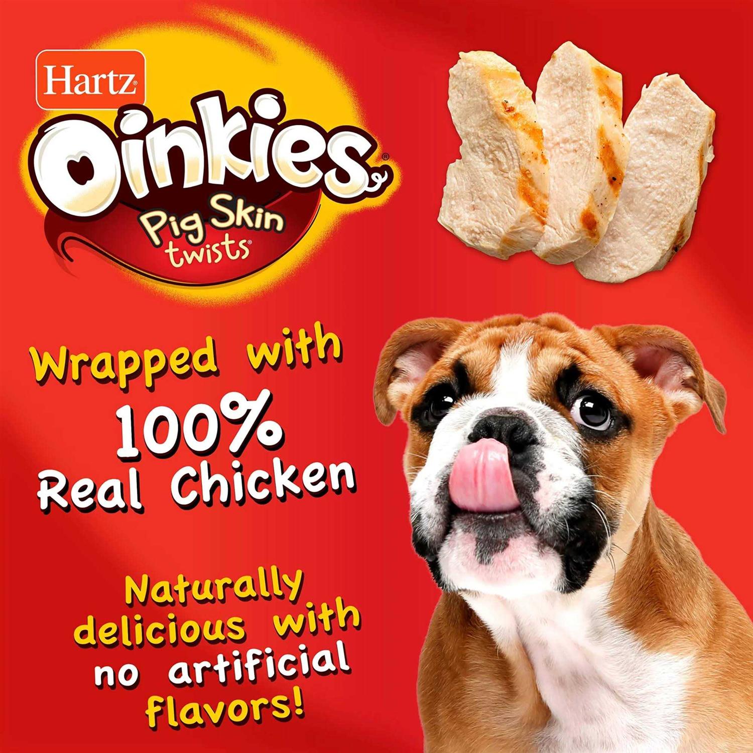 Hartz Oinkies Dog Treats Smoked Pig Skin Twists Wrapped with Real Chicken, 32 Count