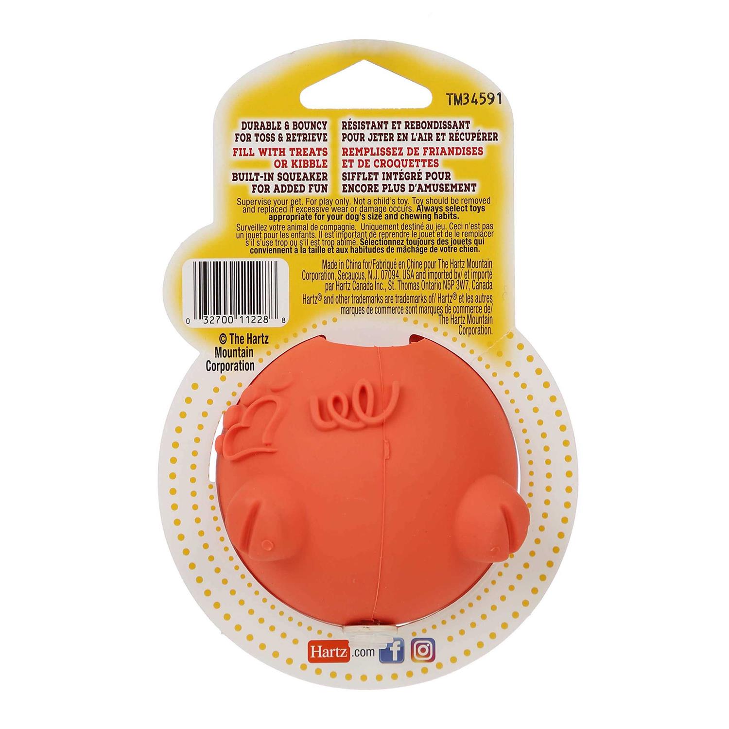 This fun and interactive treat dispenser will have your dog entertained for hours. Just insert your furry pal’s favorite small dry treat or kibble, and watch the treats fall out as the piglet gets tossed and rolled. You can also insert your pup’s favorite Hartz Oinkies Pig Skin Twists for added fun.