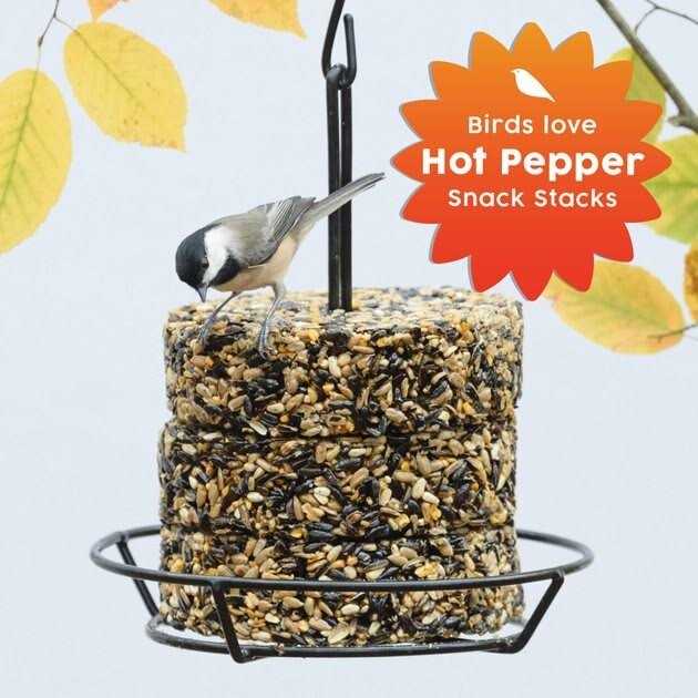 Get the best view in your backyard, all year long! Harvest Seed & Supply Hot Pepper Snack Stack Corn Free Wild Bird Food is designed to specifically attract beautiful backyard birds like chickadees, cardinals, sparrows, finches and more. These corn-free spicy bird snacks contain sunflower and safflower seeds coated with spicy hot habanero oil. This bird seed is likely to attract wild birds but keep squirrels away. For less mess and less hassle, place these cakes in your feeder and enjoy the view!