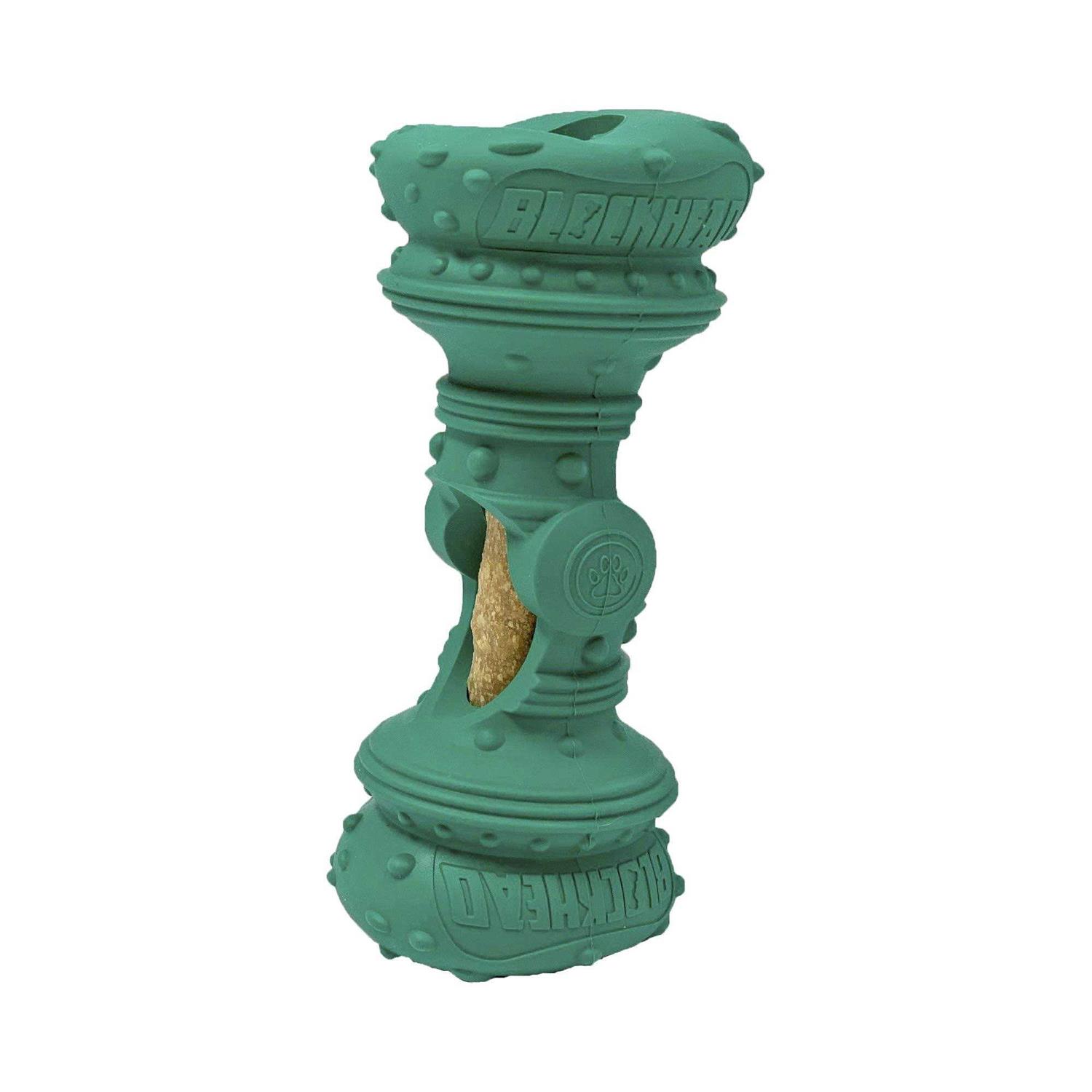 Does your dog chew and swallow things faster than a speeding bullet?! Jughead Slim is here to save the day! It protects your dog against speedy chew chomping and even extends the life of your chew. Chew smarter and longer! Jughead Slim is powerful, puzzling, and protective! It slows down chew time and makes chews last longer! The Jughead Slim is engineered to fit bully sticks and Himalayan Dog Chew Yum and Churro treats. You can also use other forms of treats like apples or carrots. Simply insert into the center of the Jughead Slim. Complete your Speedy Chomping fighting team with the rest of the Chew Guardian trio, Jughead Classic and Jughead Super.
