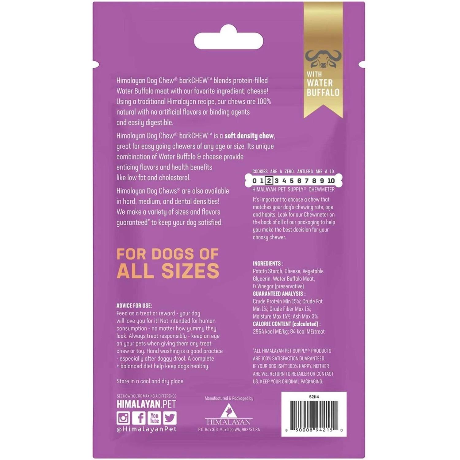 New from Himalayan Dog Chew, barkCHEW with Turmeric treats are the perfect option for lighter chewers. Savory, soft dental chews are a tasty combination of turmeric, coconut and cheese your dog will love! Limited ingredients, lactose, grain and gluten free and easily digestible. For a longer chew session insert into a Himalayan Jughead toy. These are sure to become a favorite with your pet! Made in the USA. 4 oz.