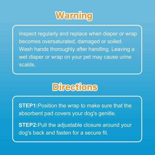 Disposable Male Dog Wraps, 50 count, Large; Male dogs love making their mark, which is why designed their Disposable Male Dog Wraps! They are designed to secure around your pup’s private parts and over his back to help prevent spontaneous marking around your home. While you rest easy, your dog can walk comfortably thanks to the comfortable fur-safe, adjustable closures. These male diapers are extra absorbent and designed with leak-proof protection barriers to help stop your canine’s pee from running free. They also have a convenient wetness indicator, which changes color when it’s time to change his diaper. So, strap your sidekick up and let the worry-free wandering begin! That’s a wrap, folks!