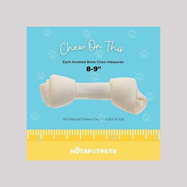Hotspot Pets All Natural White 8-9-in Knotted Rawhide Bones Dog Chew Treats, 3 Count