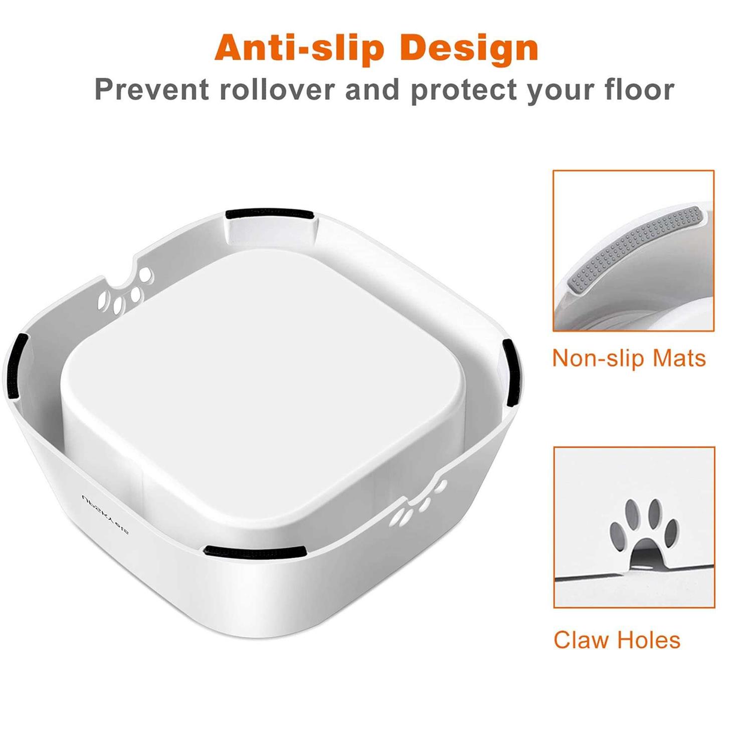 Double Anti-spill: The waterproof edge strip and floating disk dual design can effectively prevent water from overflowing keeping your floor dry and tidy at all times. Slow Water Feeder: The automatically adjustable floating disk design slows down the drinking speed of your pet. When your pets tongue touches the floating disk it sinks and the water undulates. Extreme Large Capacity: With the dimension 8.8 x 7.2 x 2 inches the bowl has a pretty large and practical capacity about 35oz in total which is enough for dogs to drink a whole day. Prevent Wet Mouth: The floating disk can control water easily and then prevent large areas of water from wetting pet’s mouth hairs. Keep your pets hair dry and tinted. Keep Water Clean: The separable 2-pieces disk welded design helps prevent the dust dirt and pet hair from falling into the water to affect water quality. Provide clean water for your pets all day.